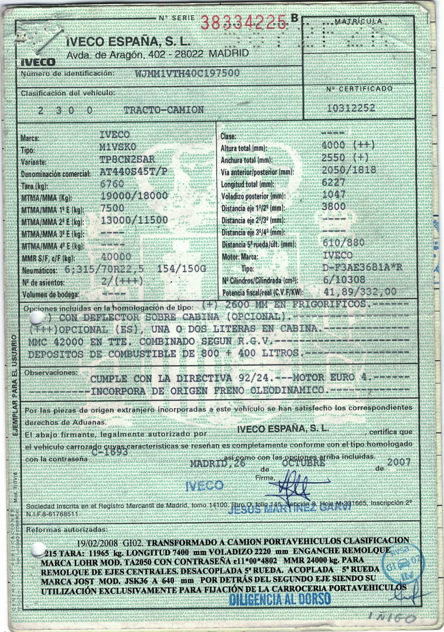 - Fecha de primera matriculación: 24/01/2008