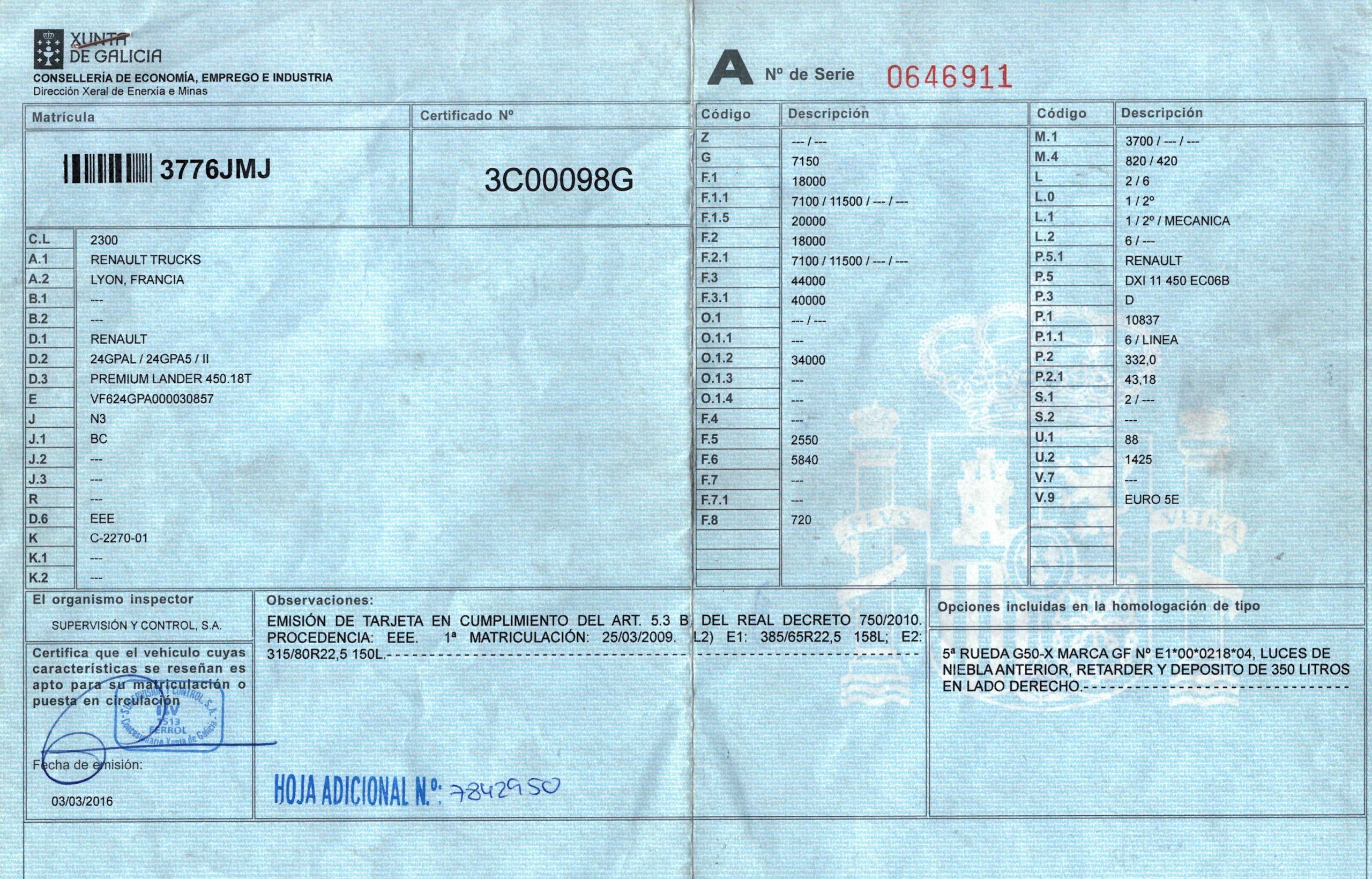 - Fecha de primera matriculación: 25/03/2009