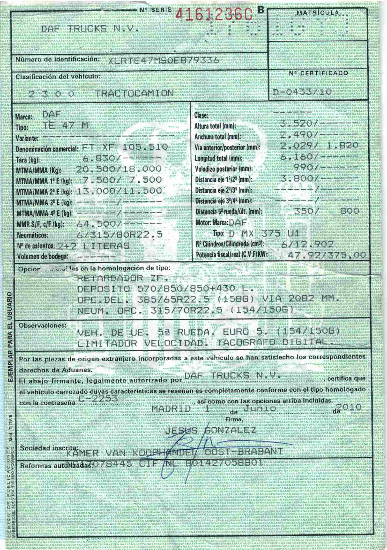 - Fecha de primera matriculación: 18/08/2010
