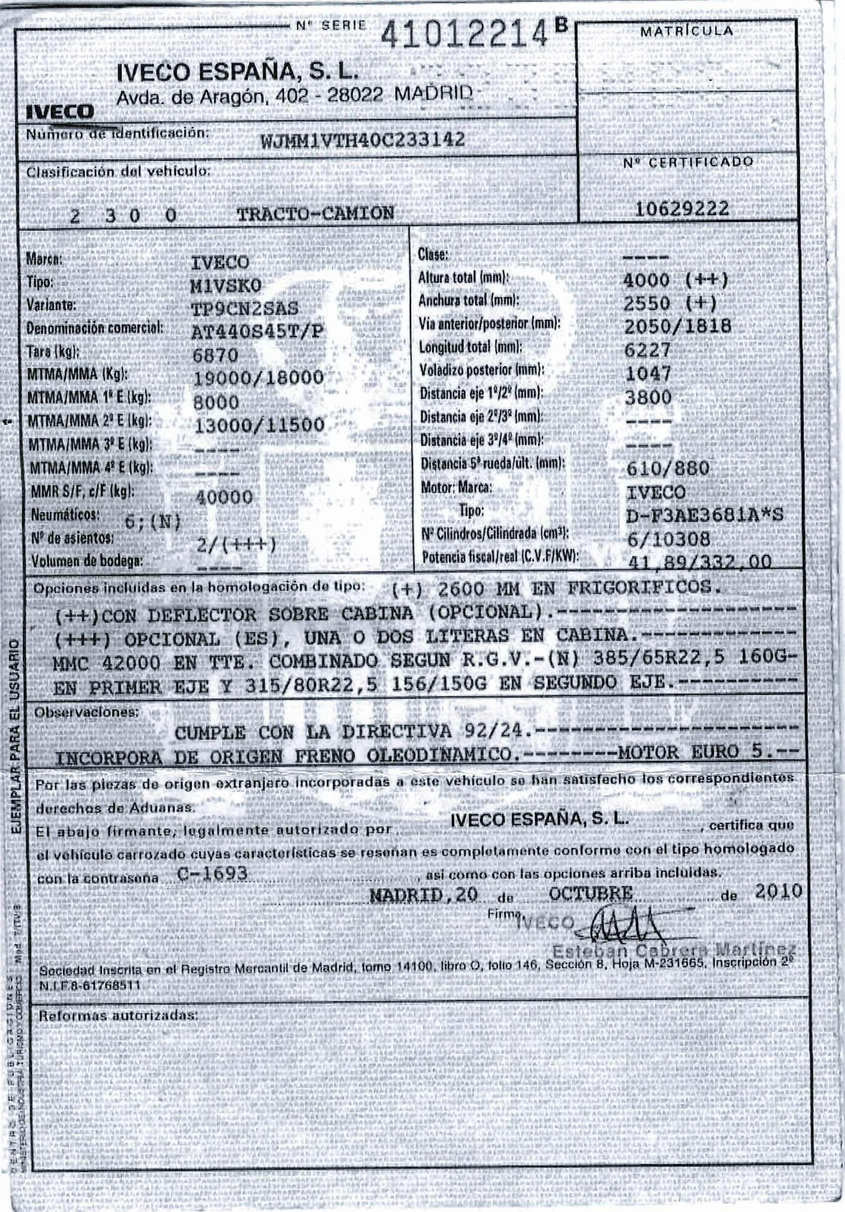 - Fecha de primera matriculación: 10/02/11