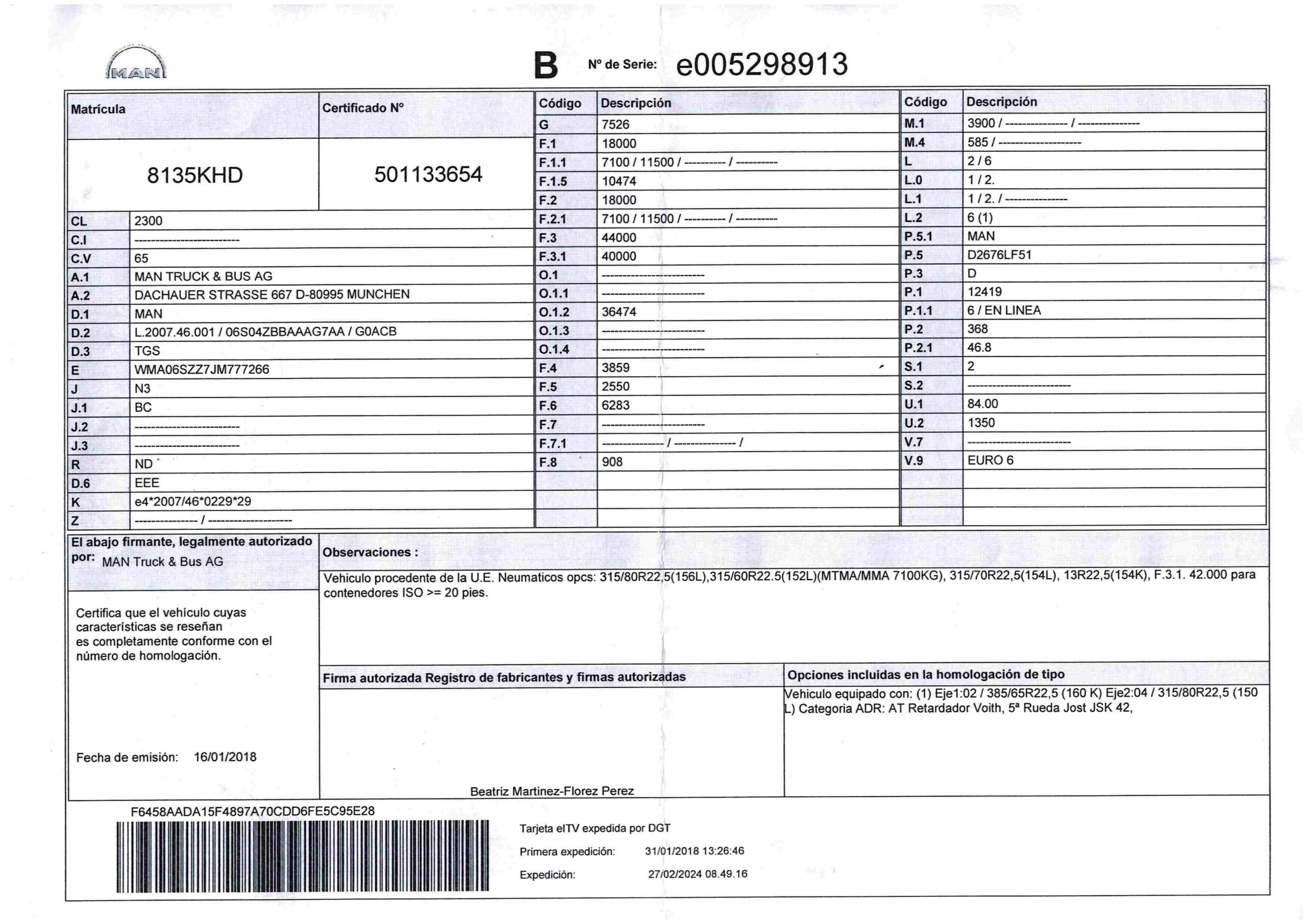 Disponible en nuestras instalaciones de Burgos (España). Si desean ampliar la información de la cabeza tractora Man no duden en contactar con nosotros.