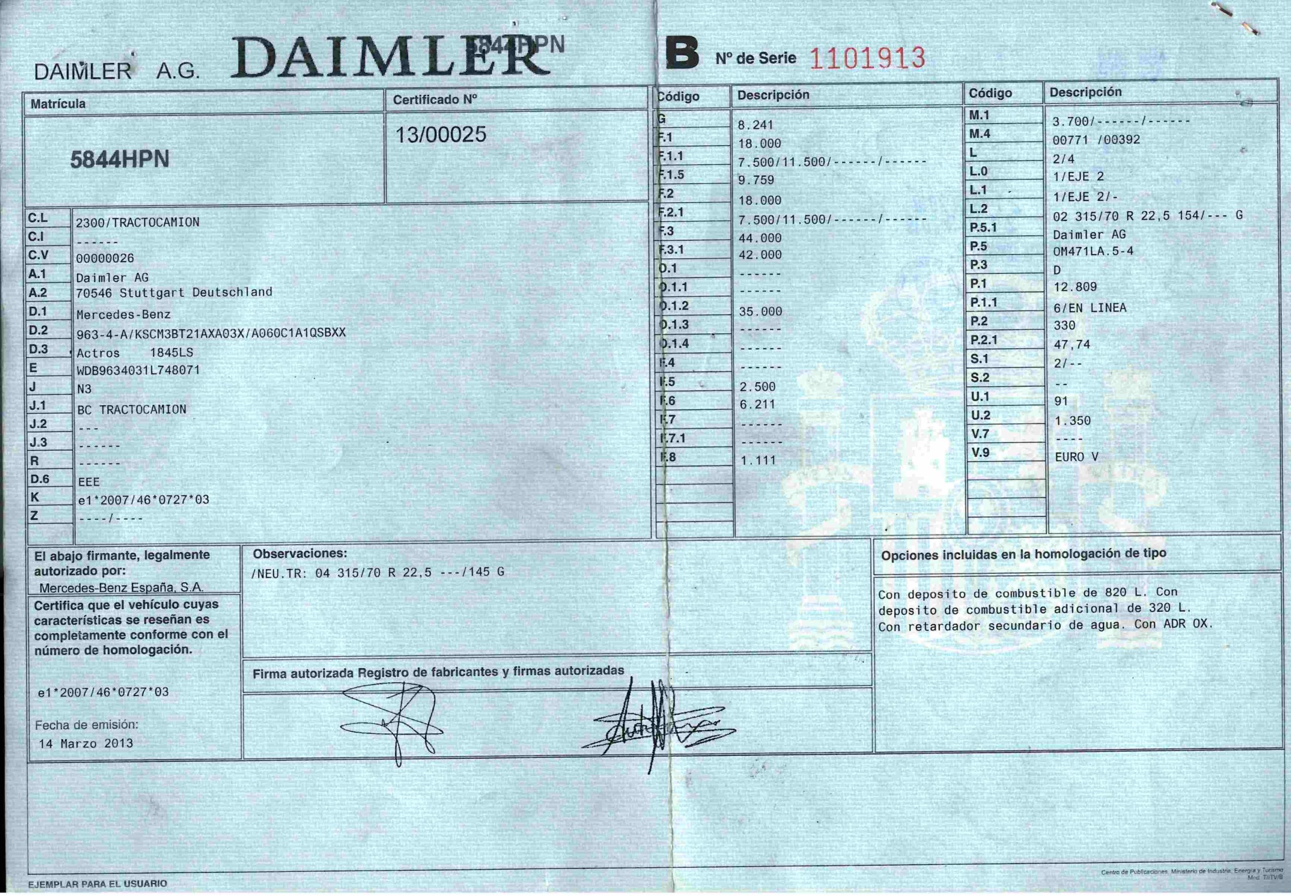 • Fecha de primera matriculación: 02/04/2013