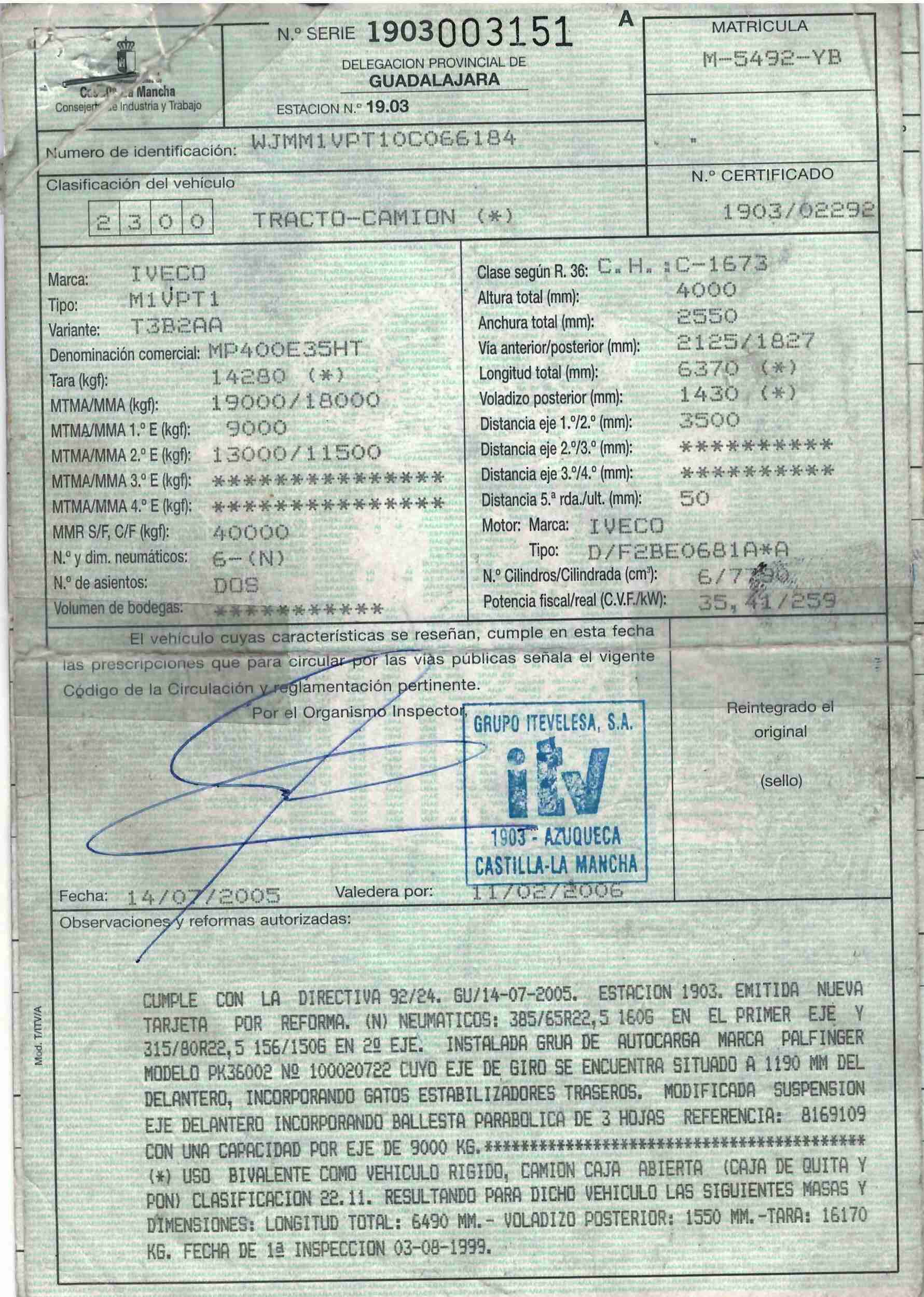 - Fecha de primera matriculación: 18/08/1999