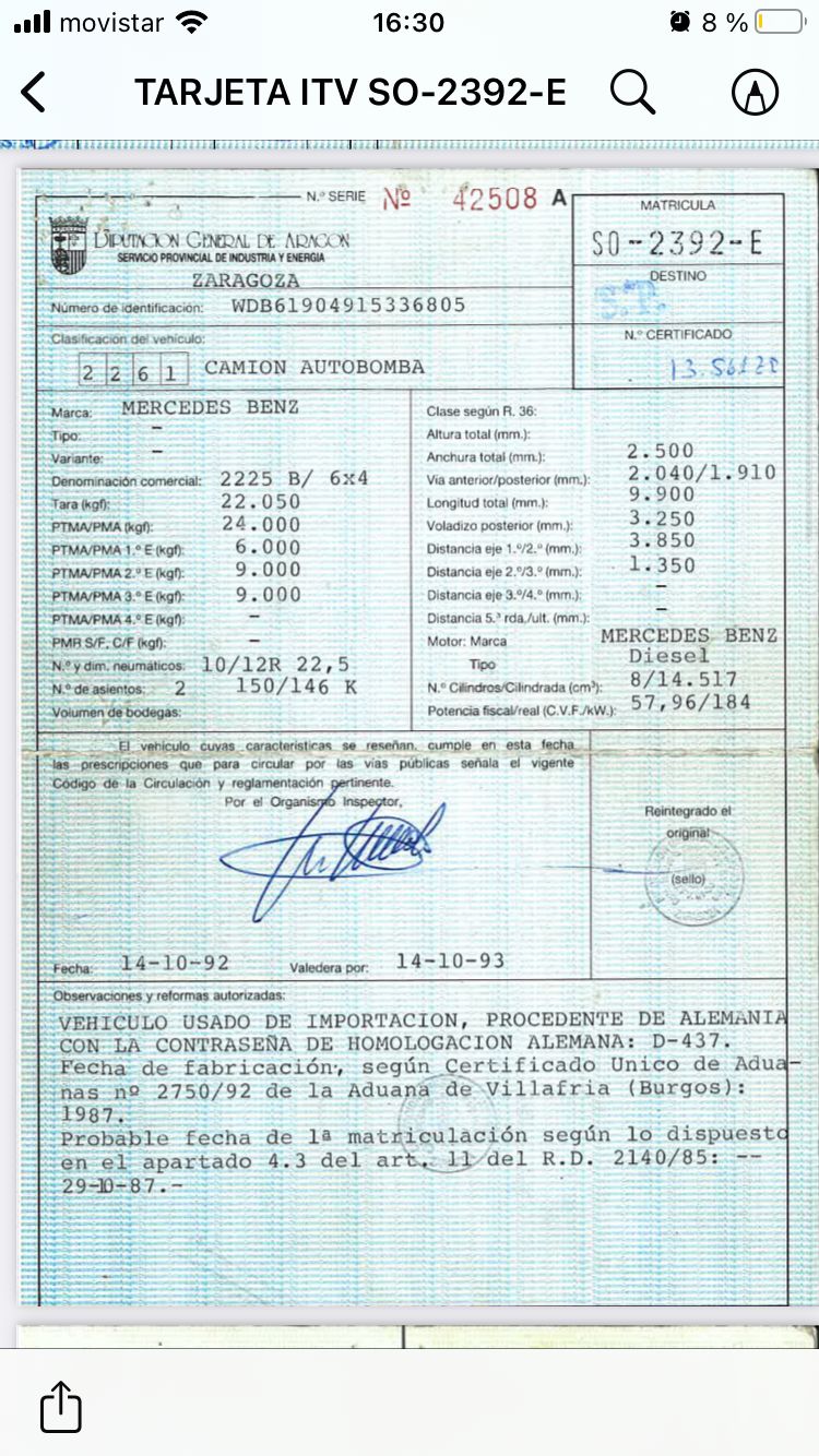 Fecha de primera matriculación: 29/10/1987