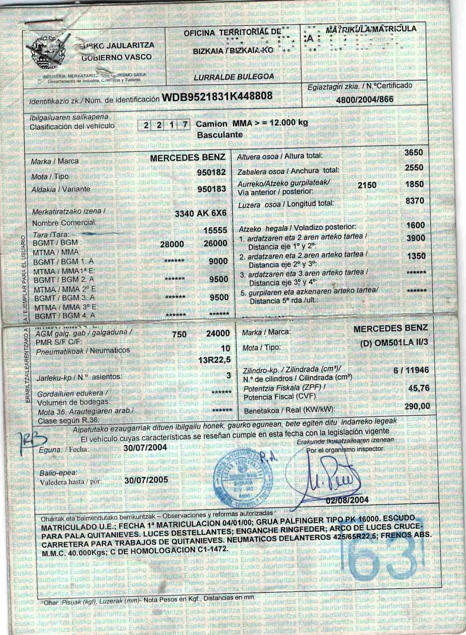 - Fecha de primera matriculación: 04/01/2000