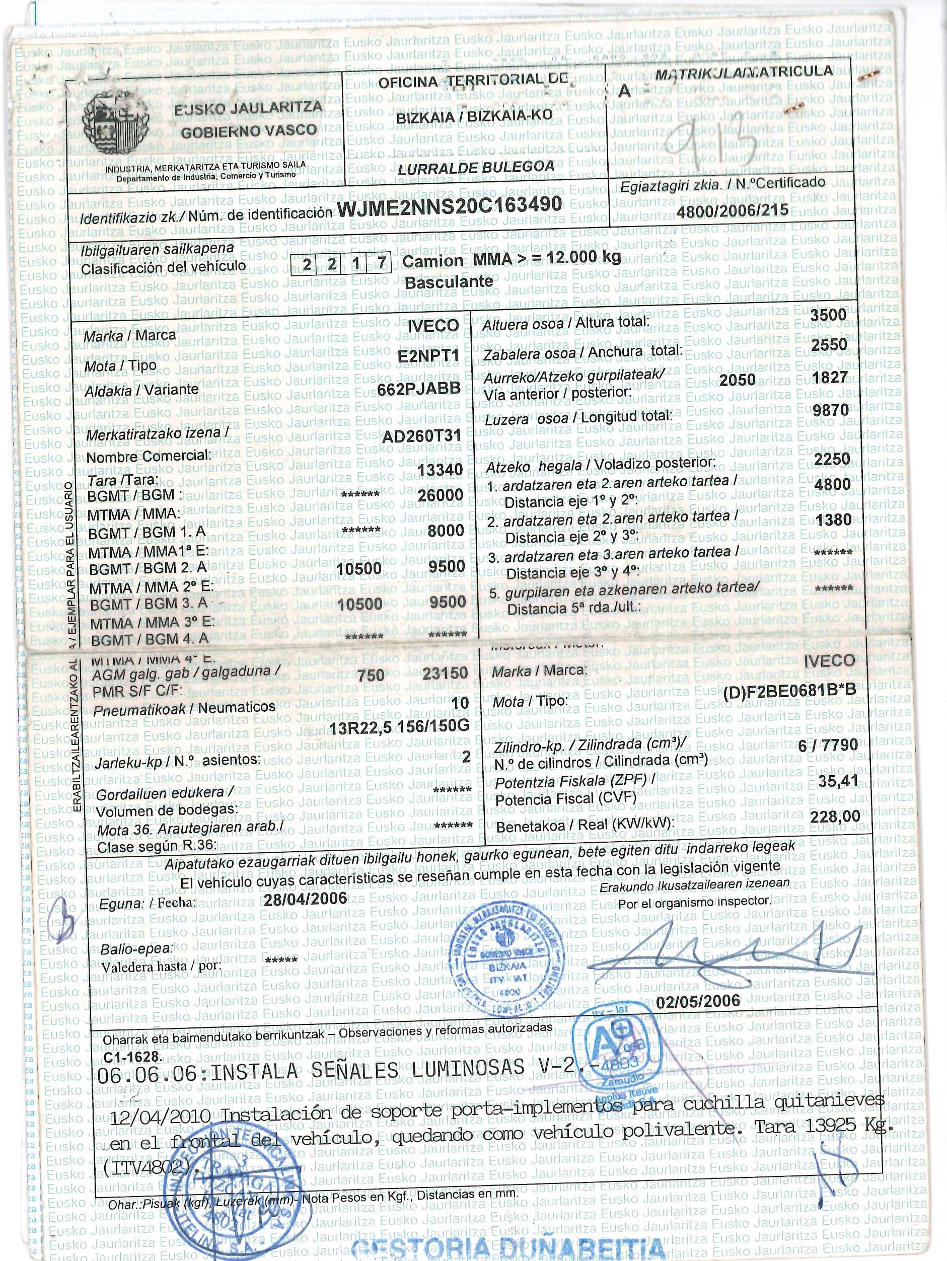 - Fecha de primera matriculación: 15/05/2006