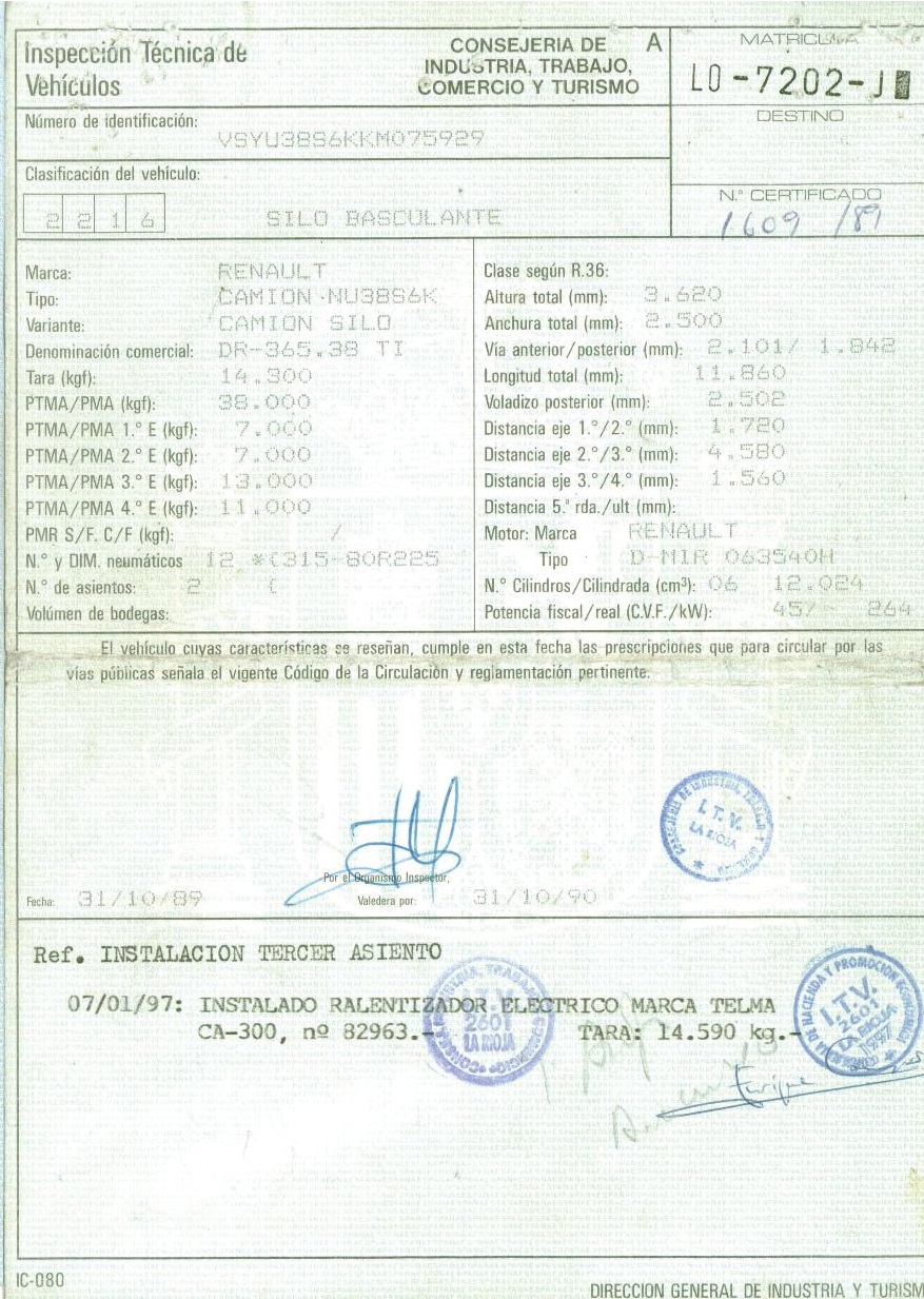 - Fecha de primera matriculación: 02-11-1989