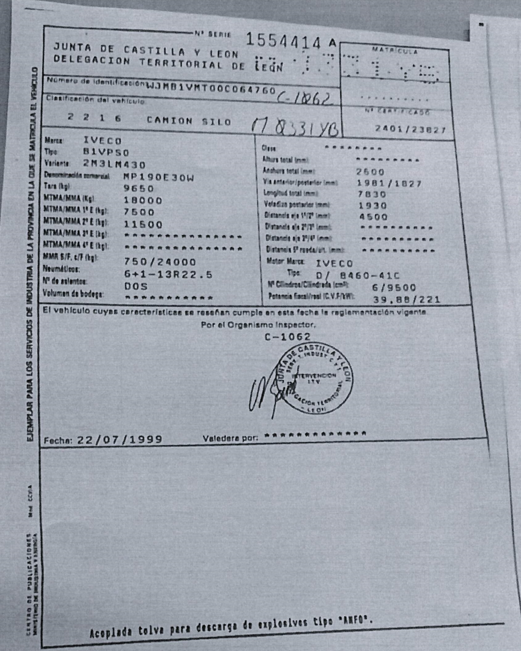 - Fecha de primera matriculación: 06/08/1999