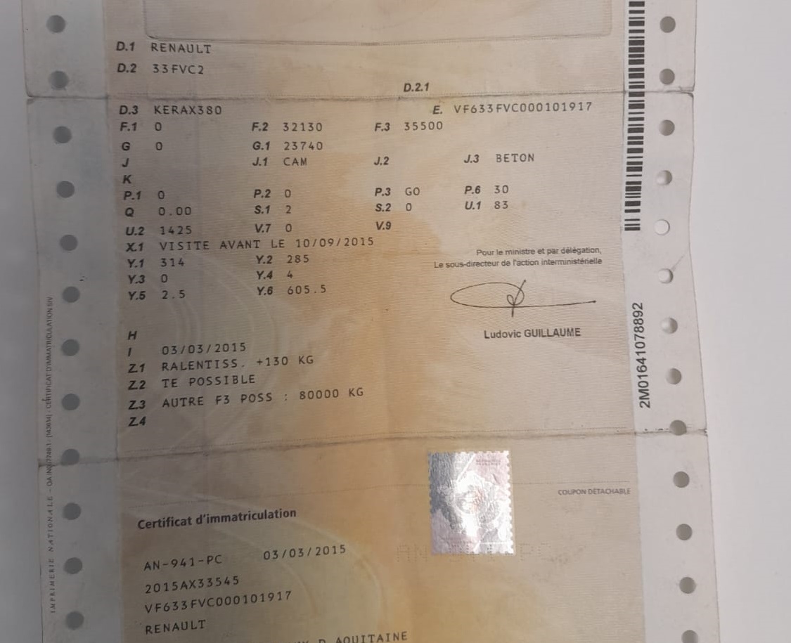 - Matrícula: AN-941-PC (francesa)