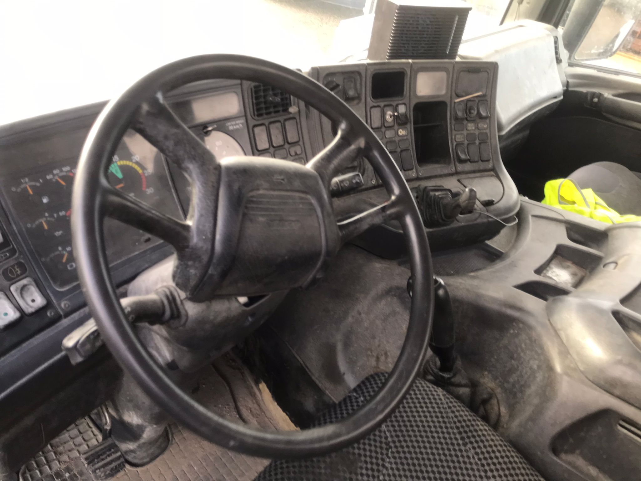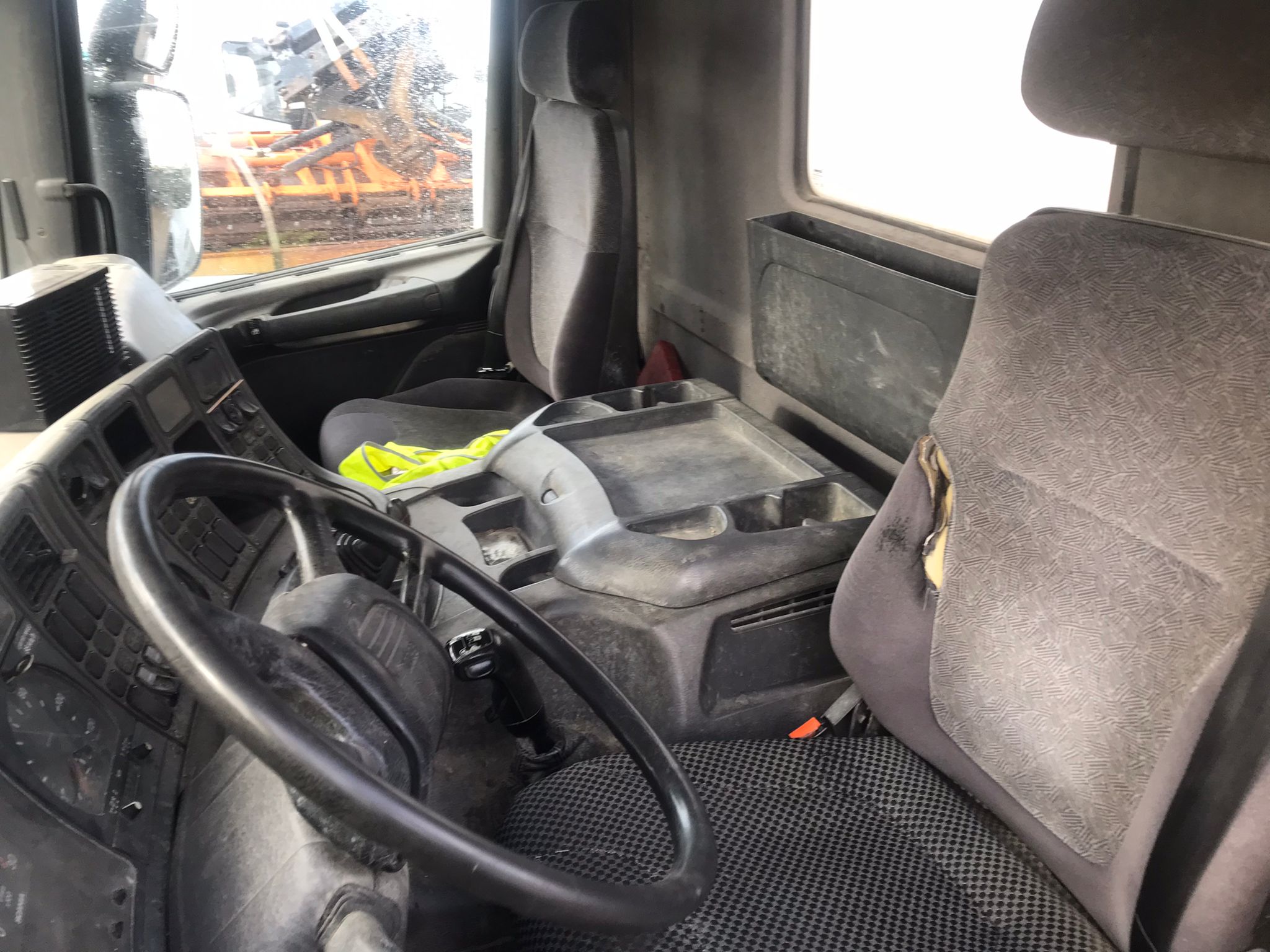 Monta neumáticos 315/80R22,5 156K y dispone de cabina con 2 plazas, proporcionando comodidad y funcionalidad para la jornada laboral.