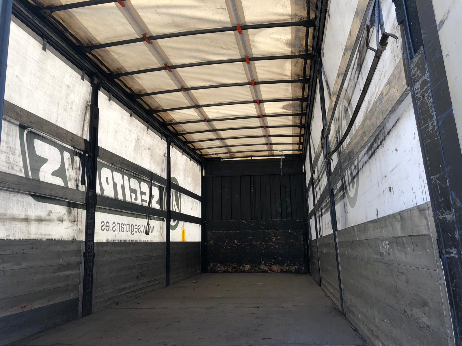 - Caja semitauliner con lonas y cartolas abatibles (medidas: 2,50 m ancho x 2,60 m alto x 8,00 m largo)