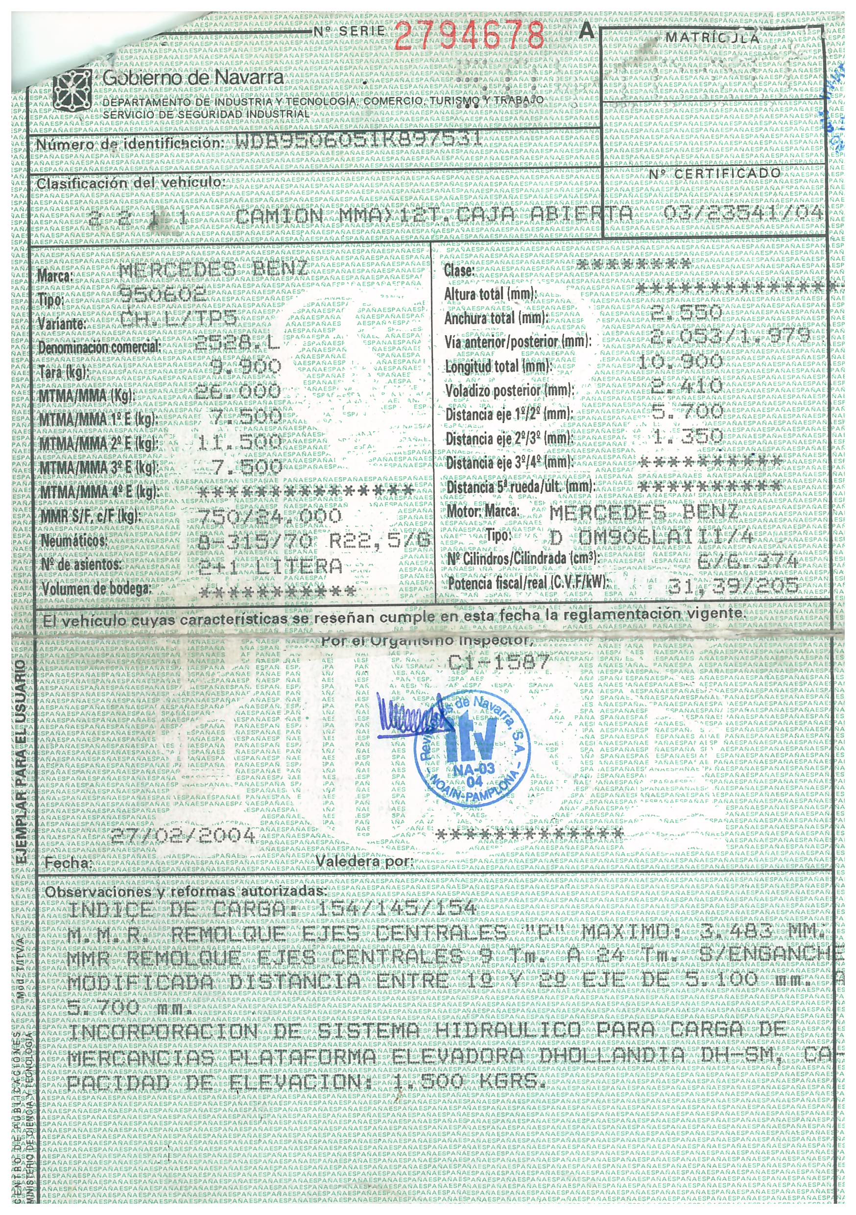 - Fecha de primera matriculación: 04/03/2004