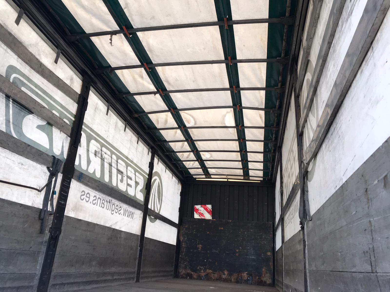 - Caja semitauliner con lonas y cartolas abatibles (medidas: 2,50 m ancho x 2,48 m alto x 8,40 m largo)