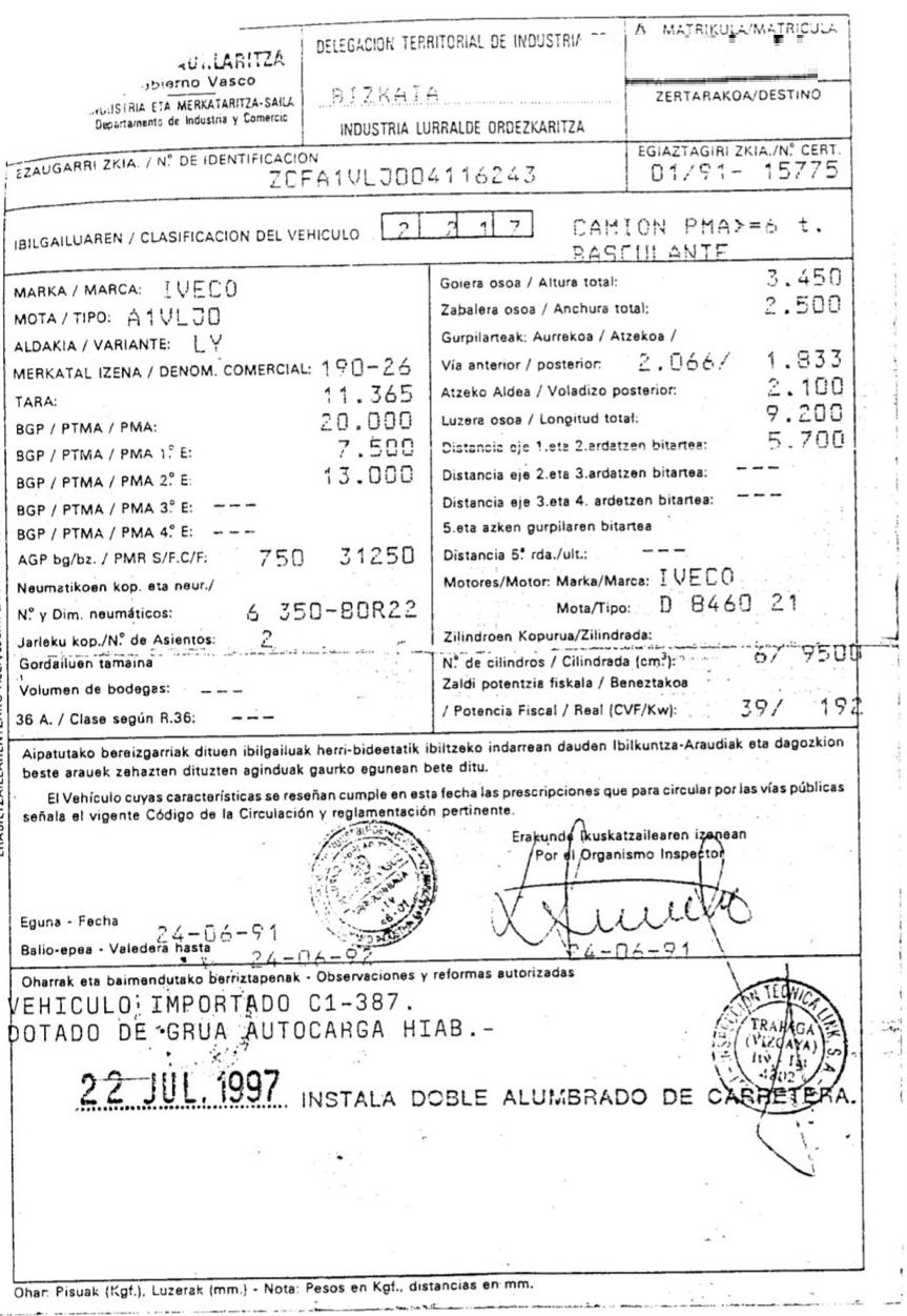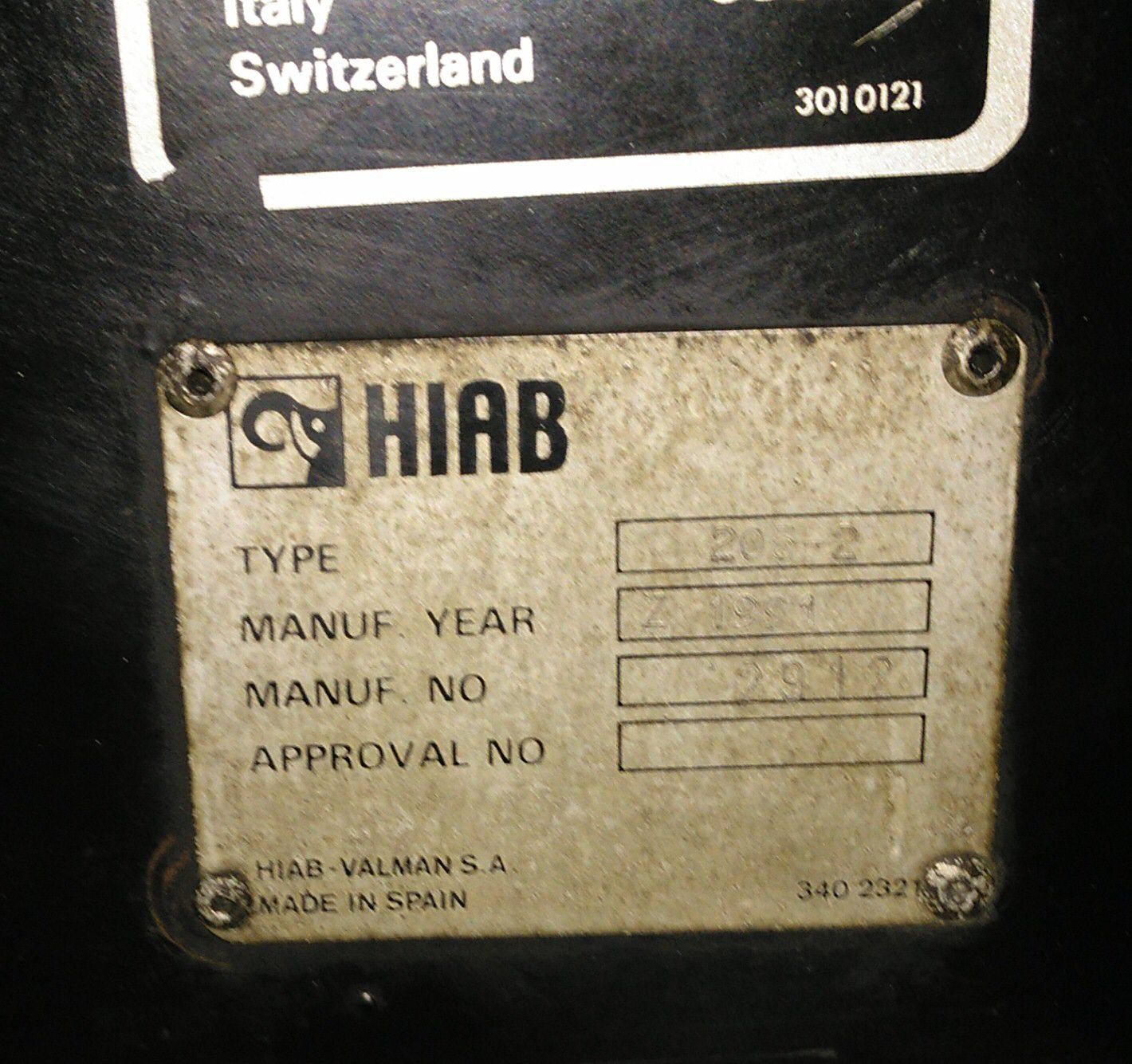 - Instalada Grúa de autocarga Marca Hiab modelo 205-2 Año 1991
