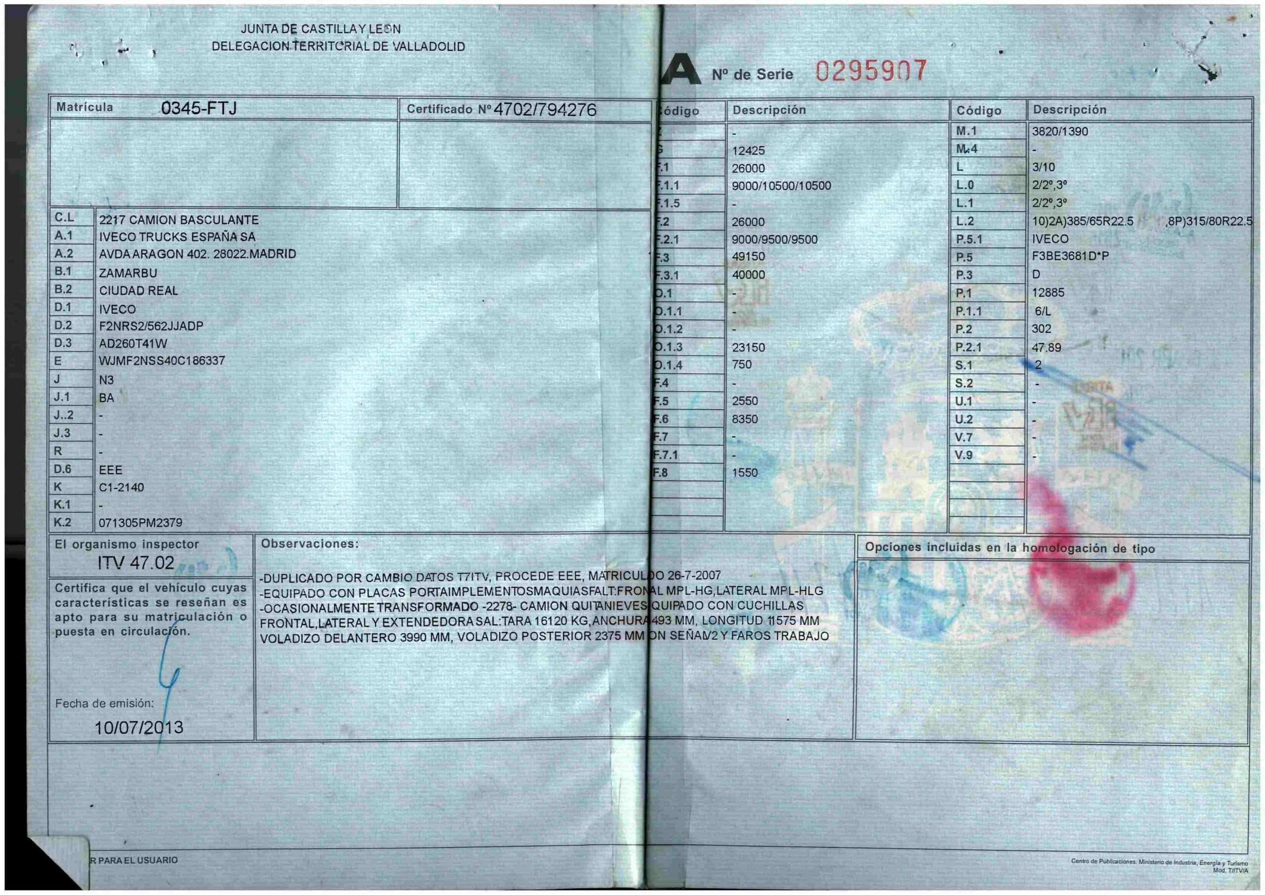 - Fecha de primera matriculación: 26/07/2007