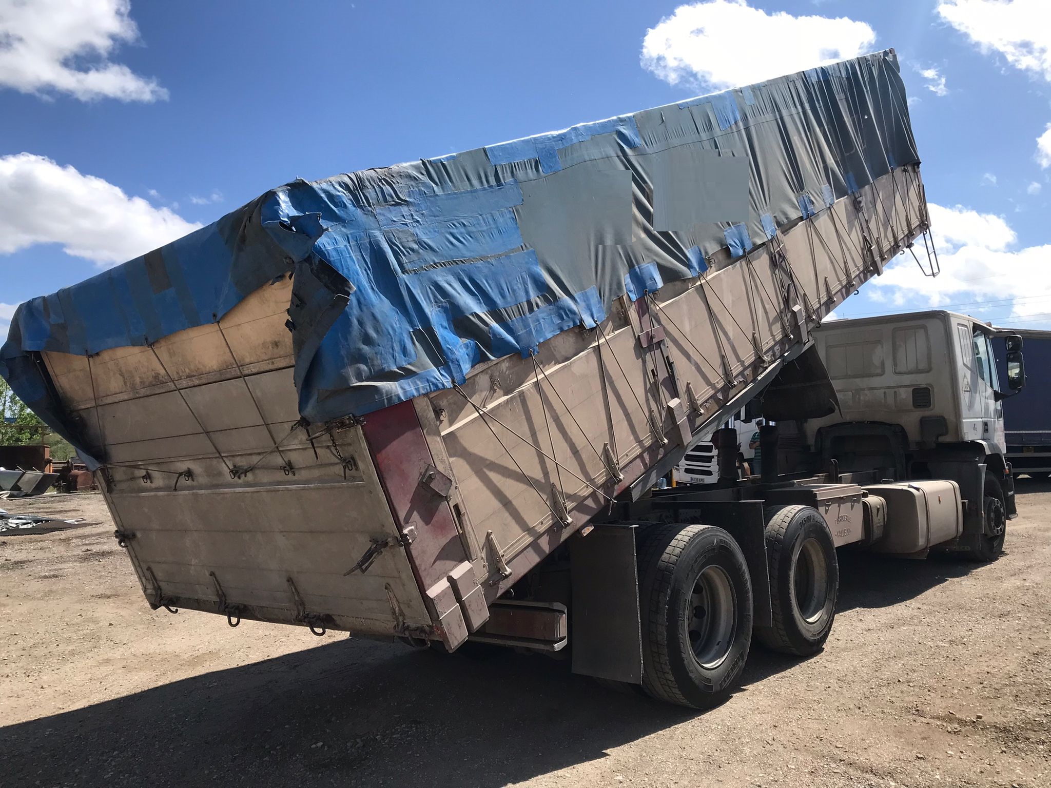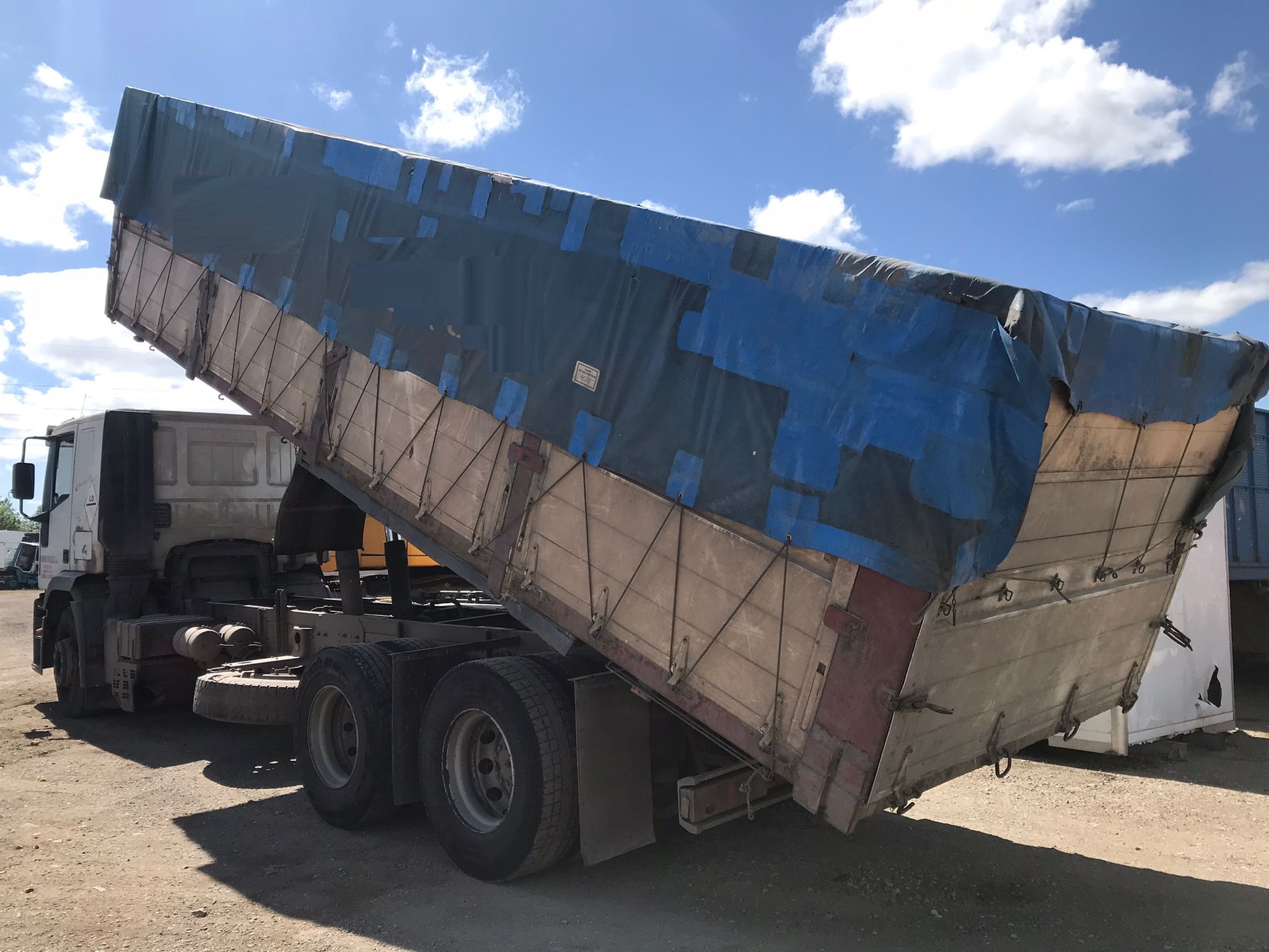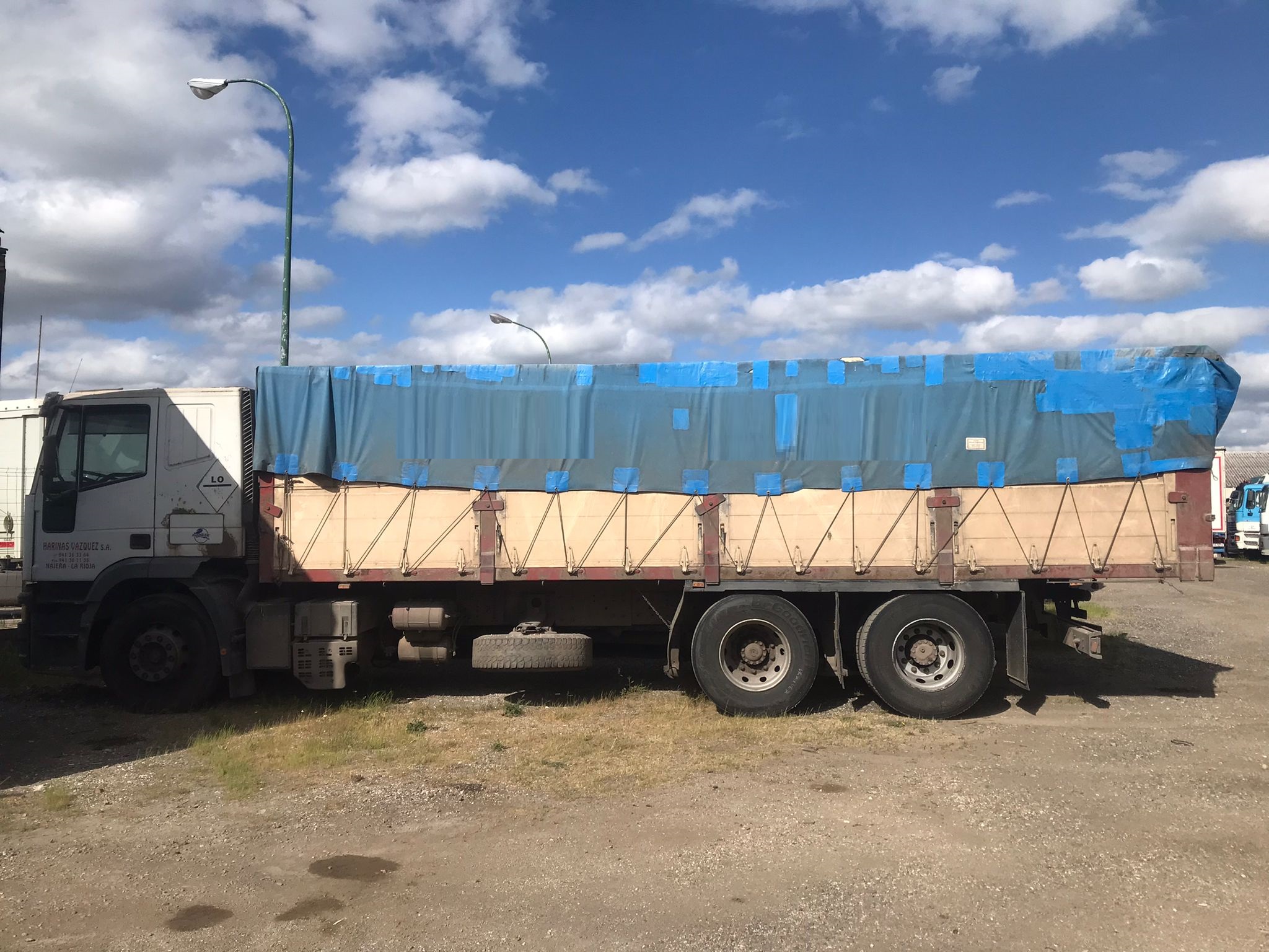 - Carrocería caja abierta basculante con cartolas abatibles de aluminio (medidas: 2,50 m de ancho x 1,75 m alto x 7,80 m largo)
