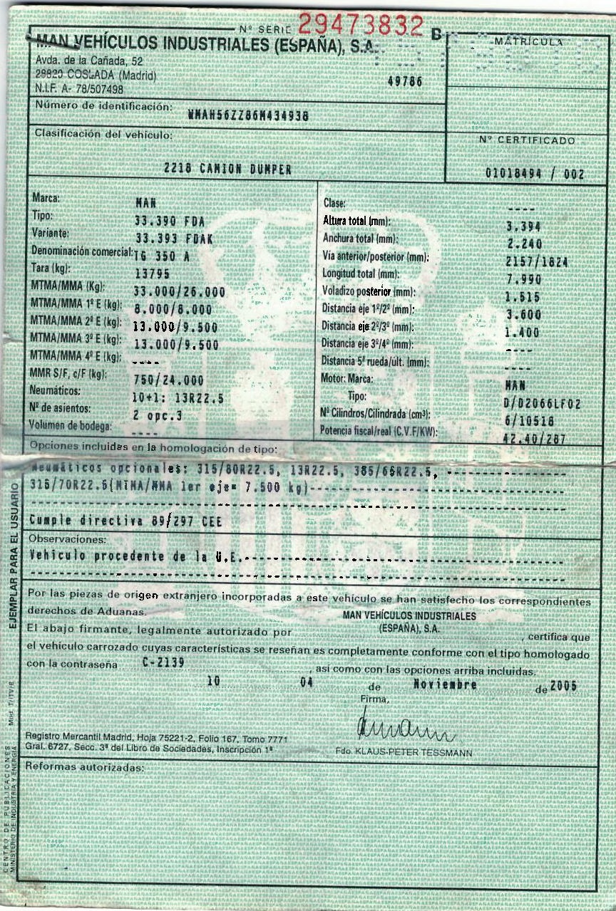 - Fecha de primera matriculación: 01/12/2005