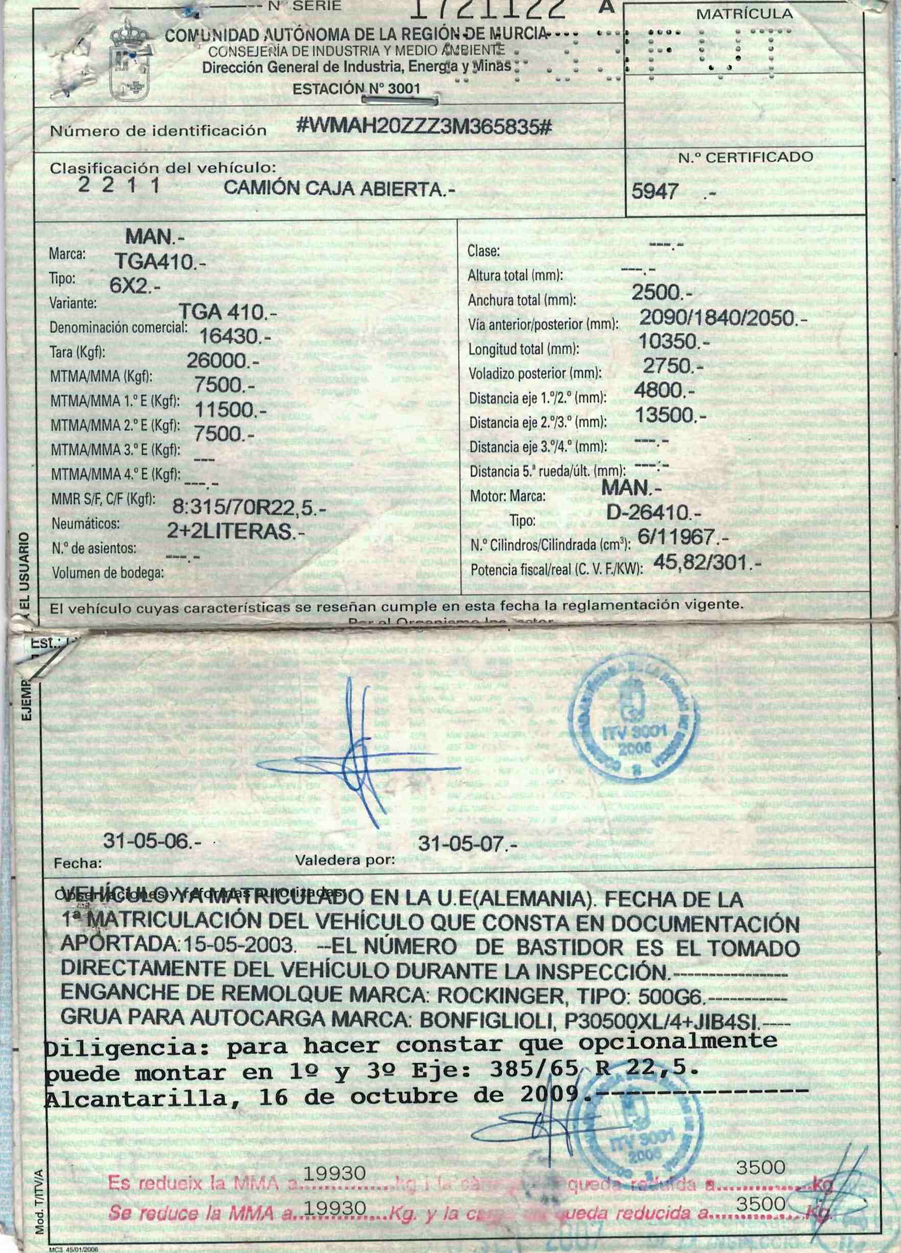 - Fecha de primera matriculación: 15/05/2003