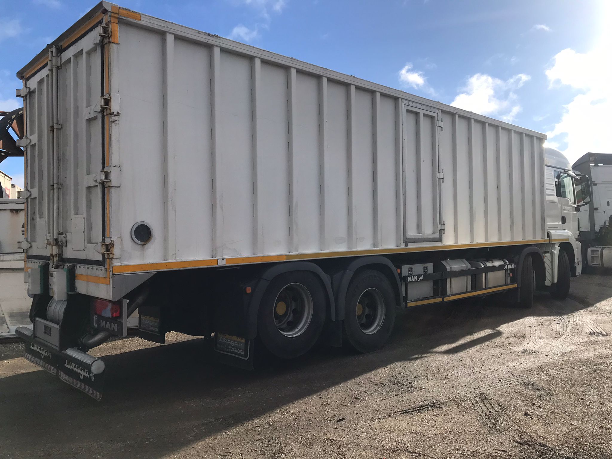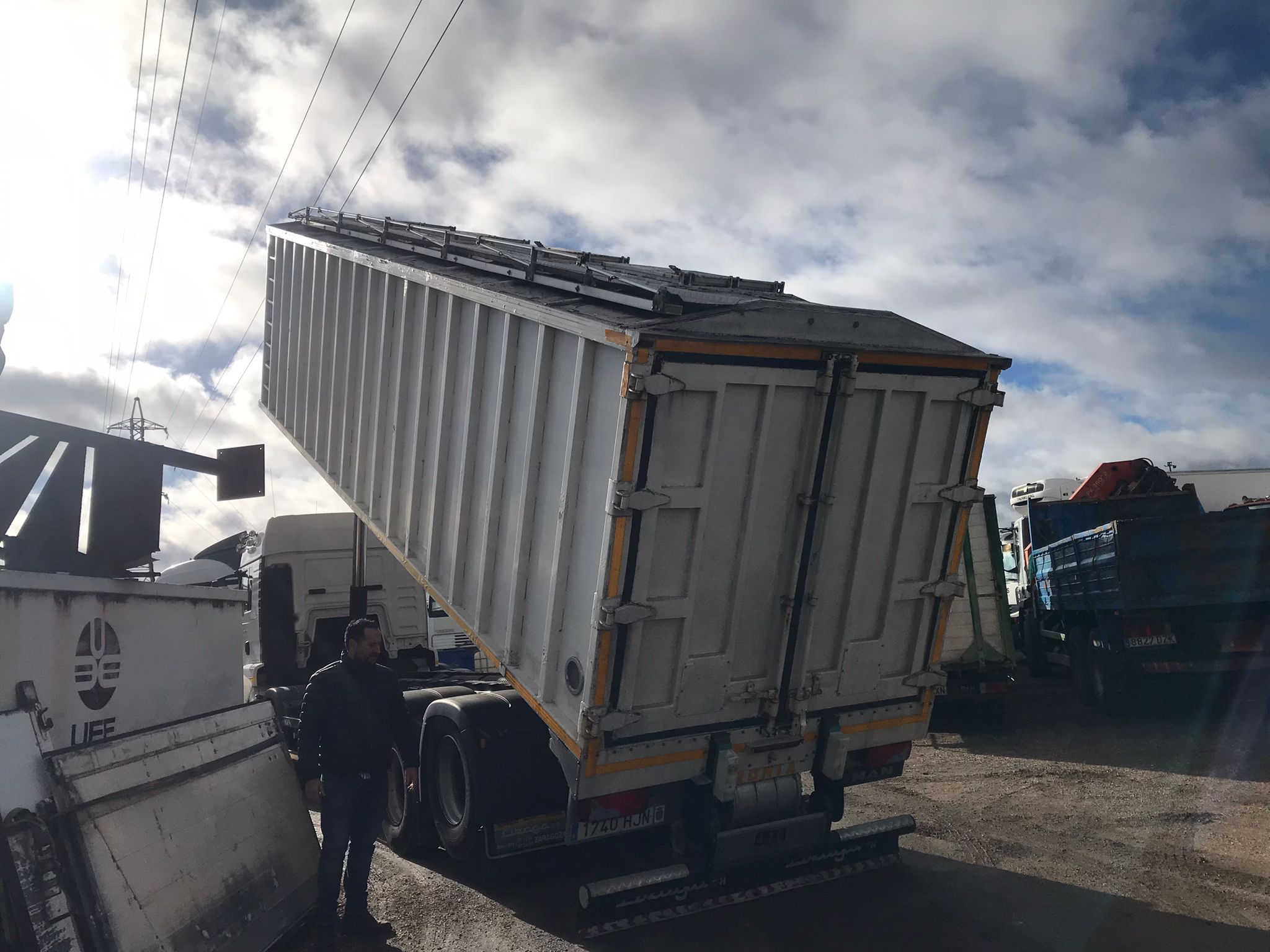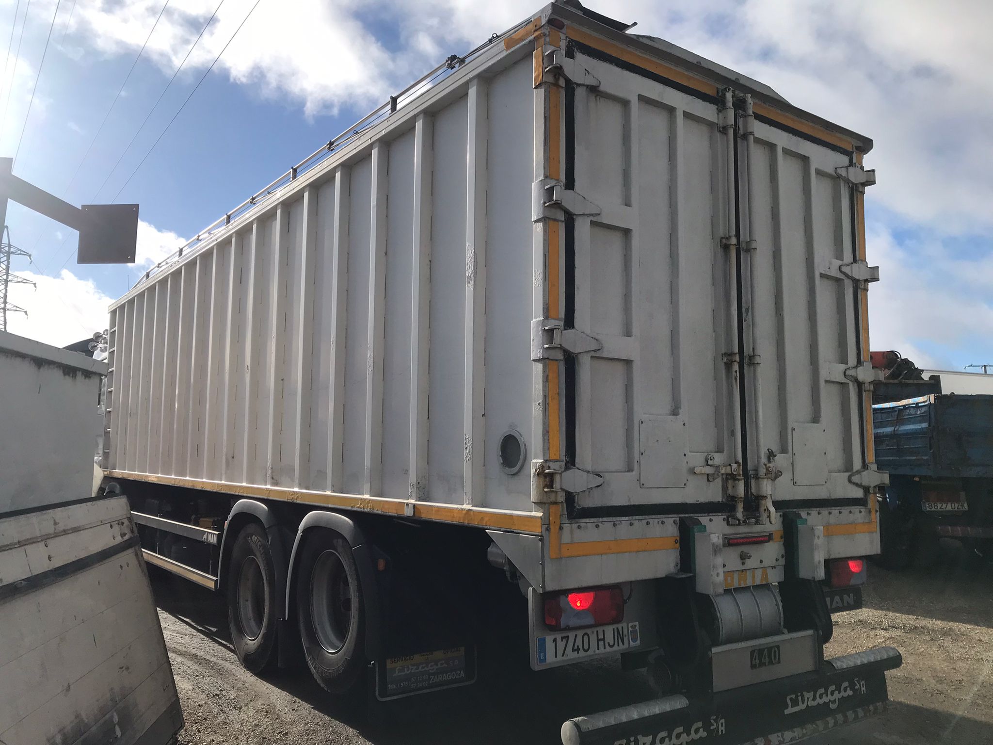 - Caja cerrada basculante de aluminio harinera, medidas interiores: 2,34 m ancho x 2,10 m alto x 8,90 m largo (capacidad aproximada 45 m3)