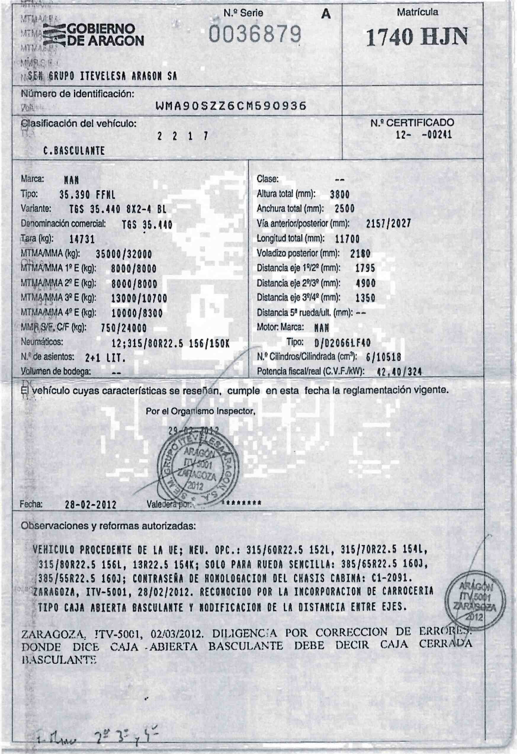 Matriculado en marzo de 2012, este vehículo cuenta con 276.817 km, motor MAN D2066LF40 de 440 CV, normativa Euro V y cambio automático, ofreciendo una conducción cómoda, eficiente y adaptada a recorridos largos y trabajos intensivos. La configuración 8×2 proporciona una excelente capacidad de carga y estabilidad, con una MMA de 32.000 kg y una carga útil de 17.269 kg, ideal para transporte profesional de alto volumen.