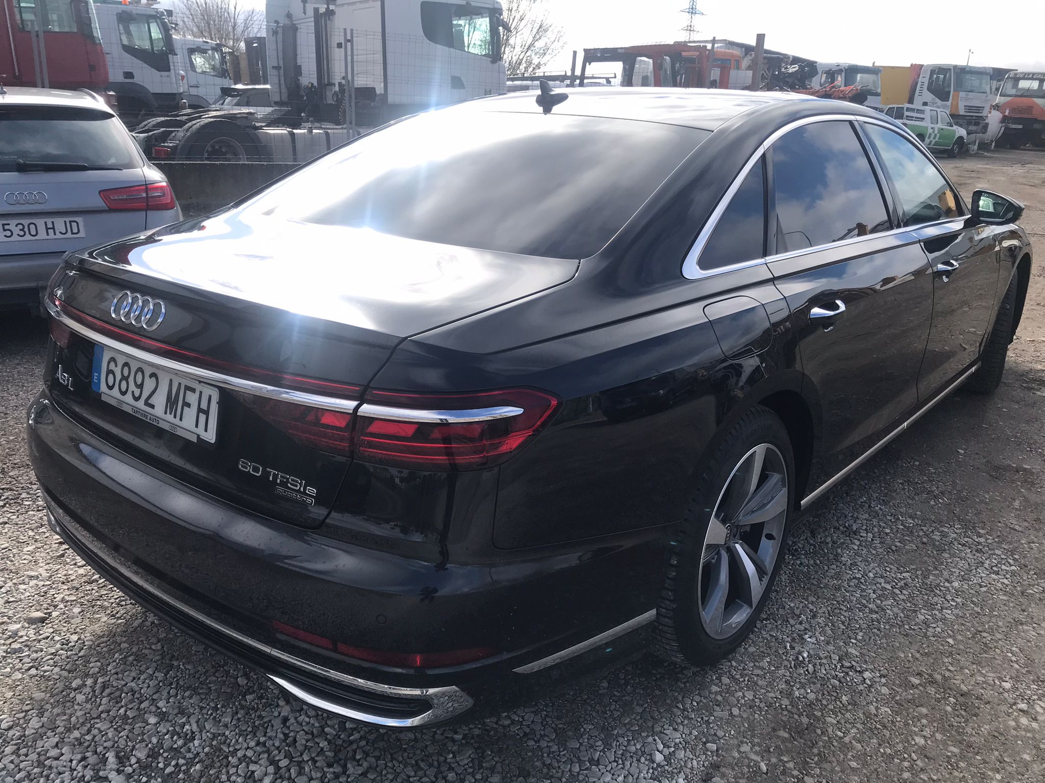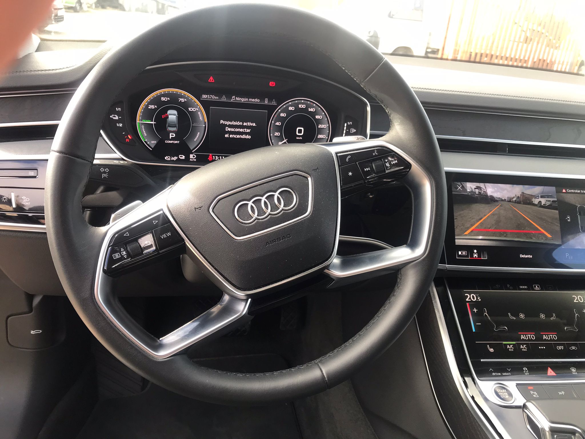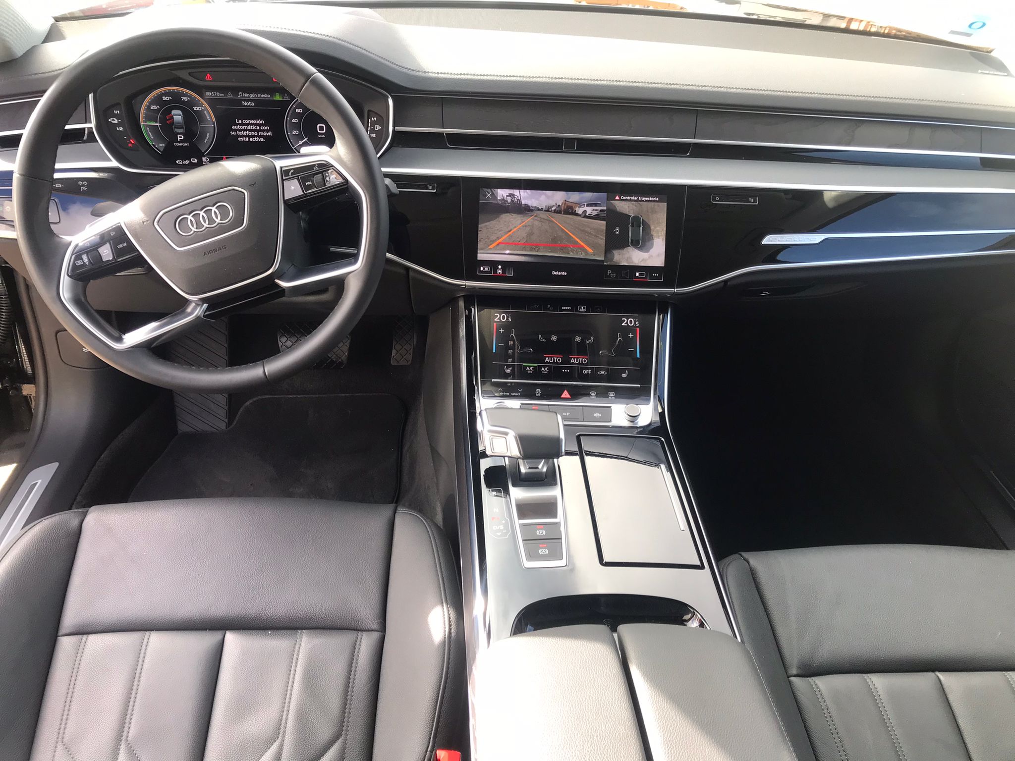 Equipamiento de serie: Matrix LED, 4-zonas climático, suspensión neumática, Audi virtual cockpit plus, cruise adaptivo, asistente de carril, cargador onboard 7,4 kW, llave comfort, cuero Valcona, volante calefactable, cargador inalámbrico, B&O 3D Sound.