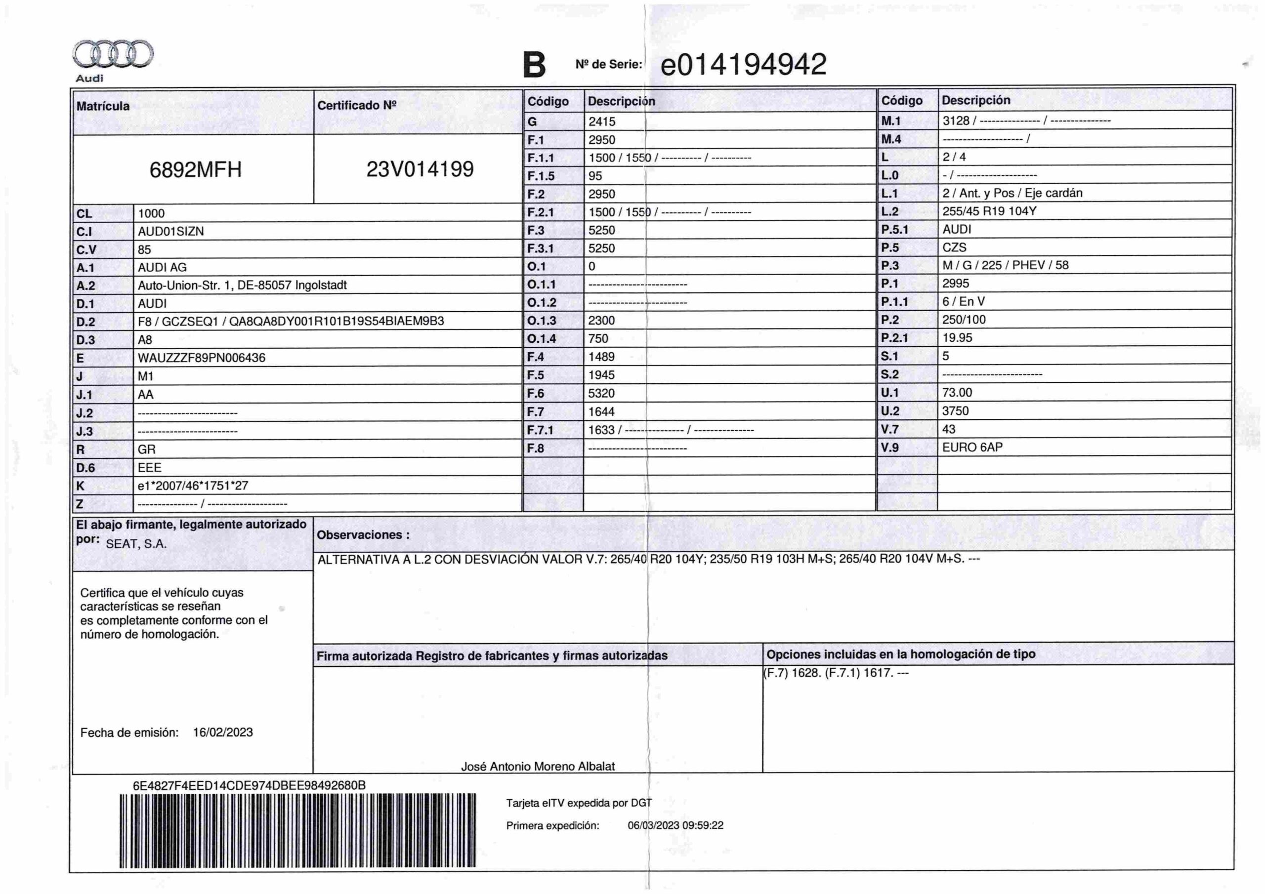 - Fecha de primera matriculación 06/03/2023