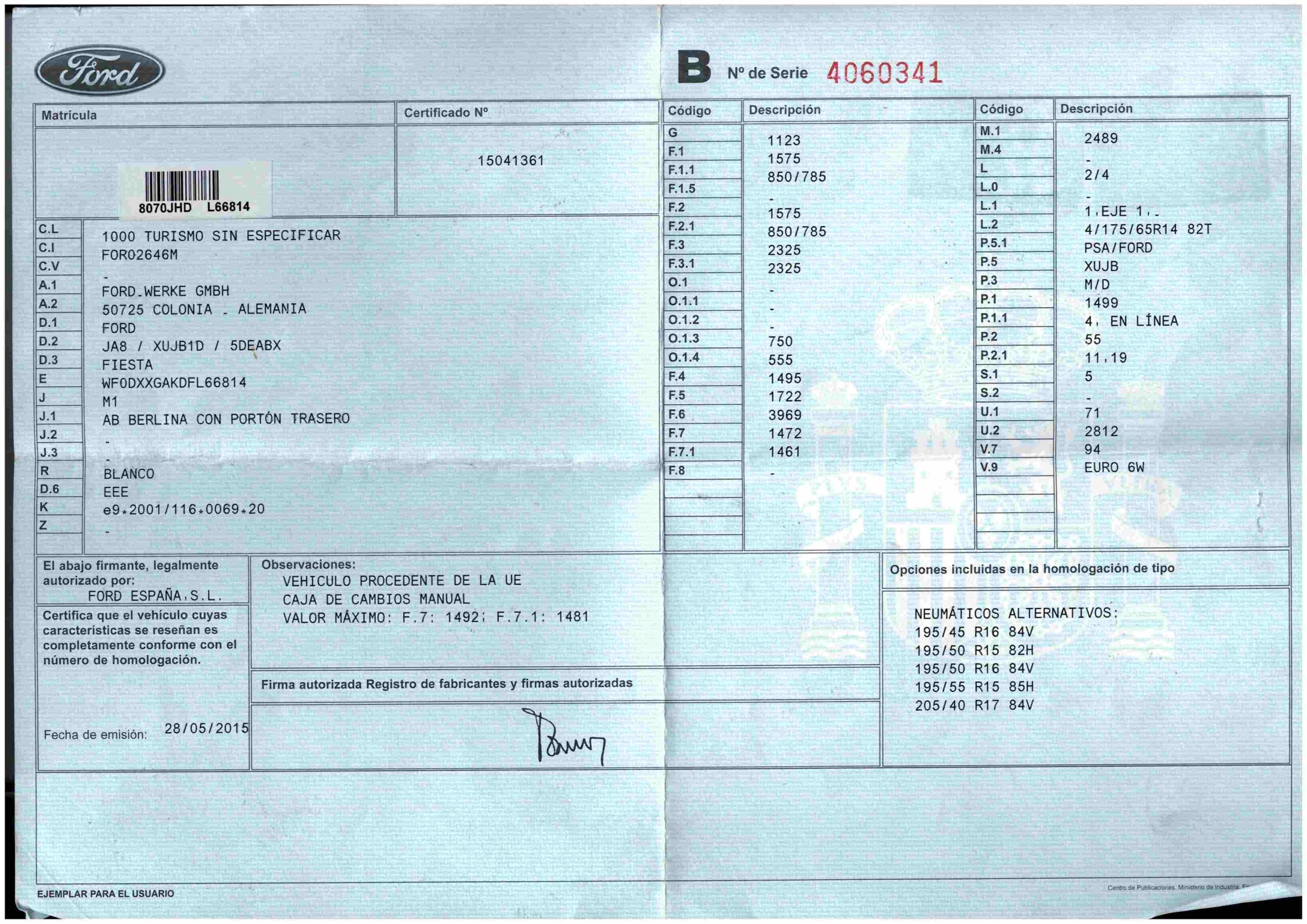 - Fecha de primera matriculación 28/07/15