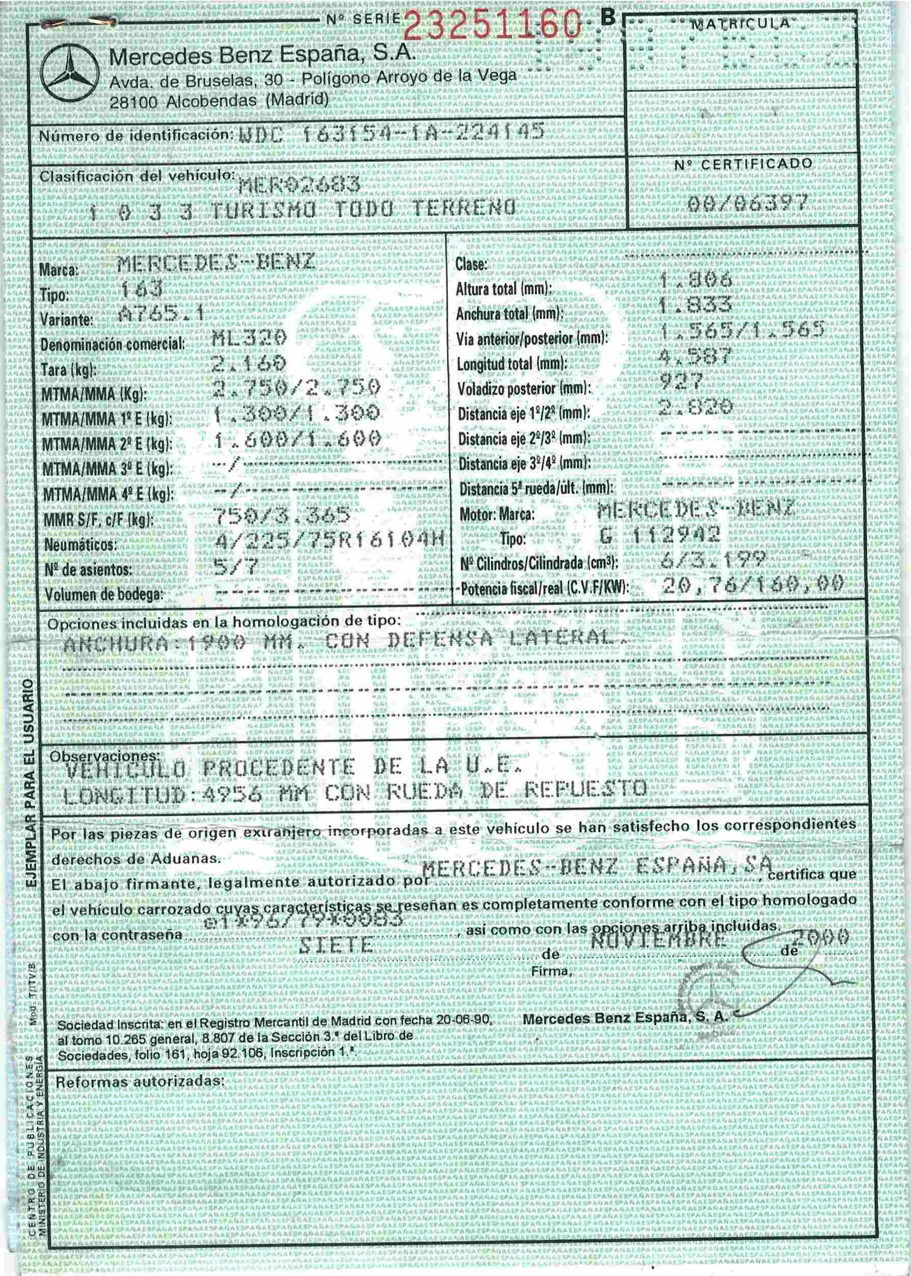 Todoterreno Mercedes-Benz ML 320 Año 2000, motor diésel, cambio automático, 142.000 km, 7 plazas