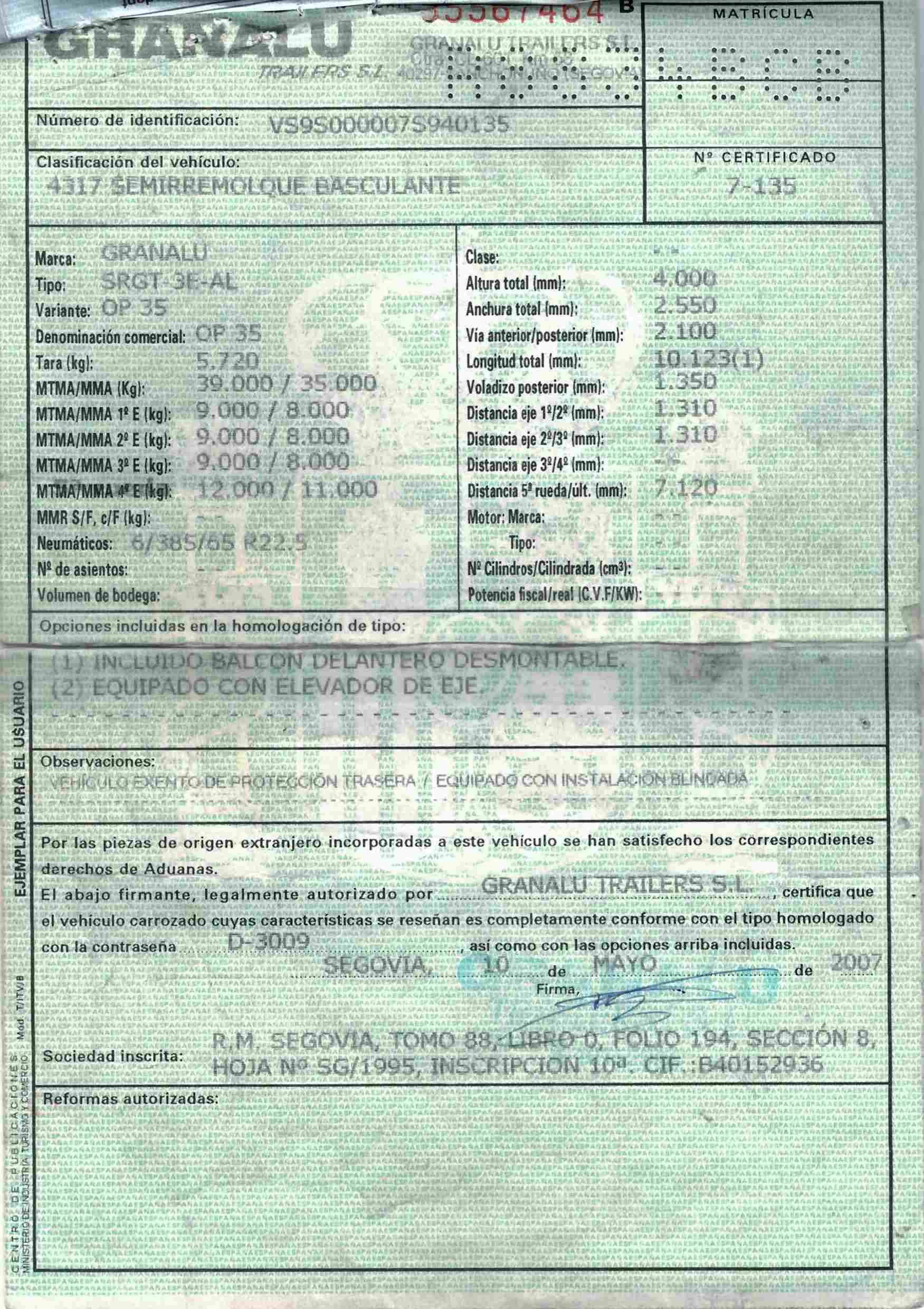 - Fecha de primera matriculación: 22/08/2007