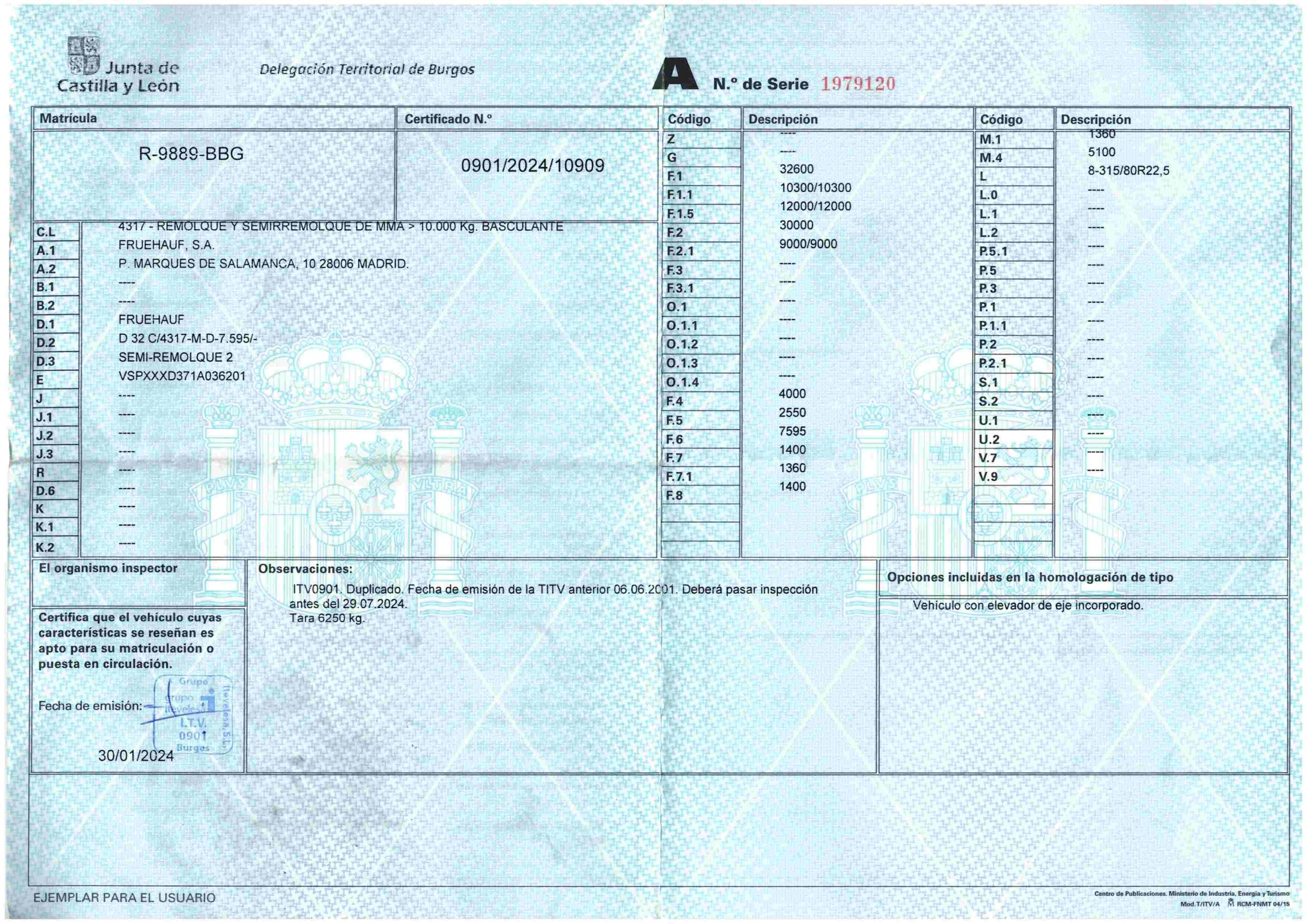 - Tara: 6.250,00 kg