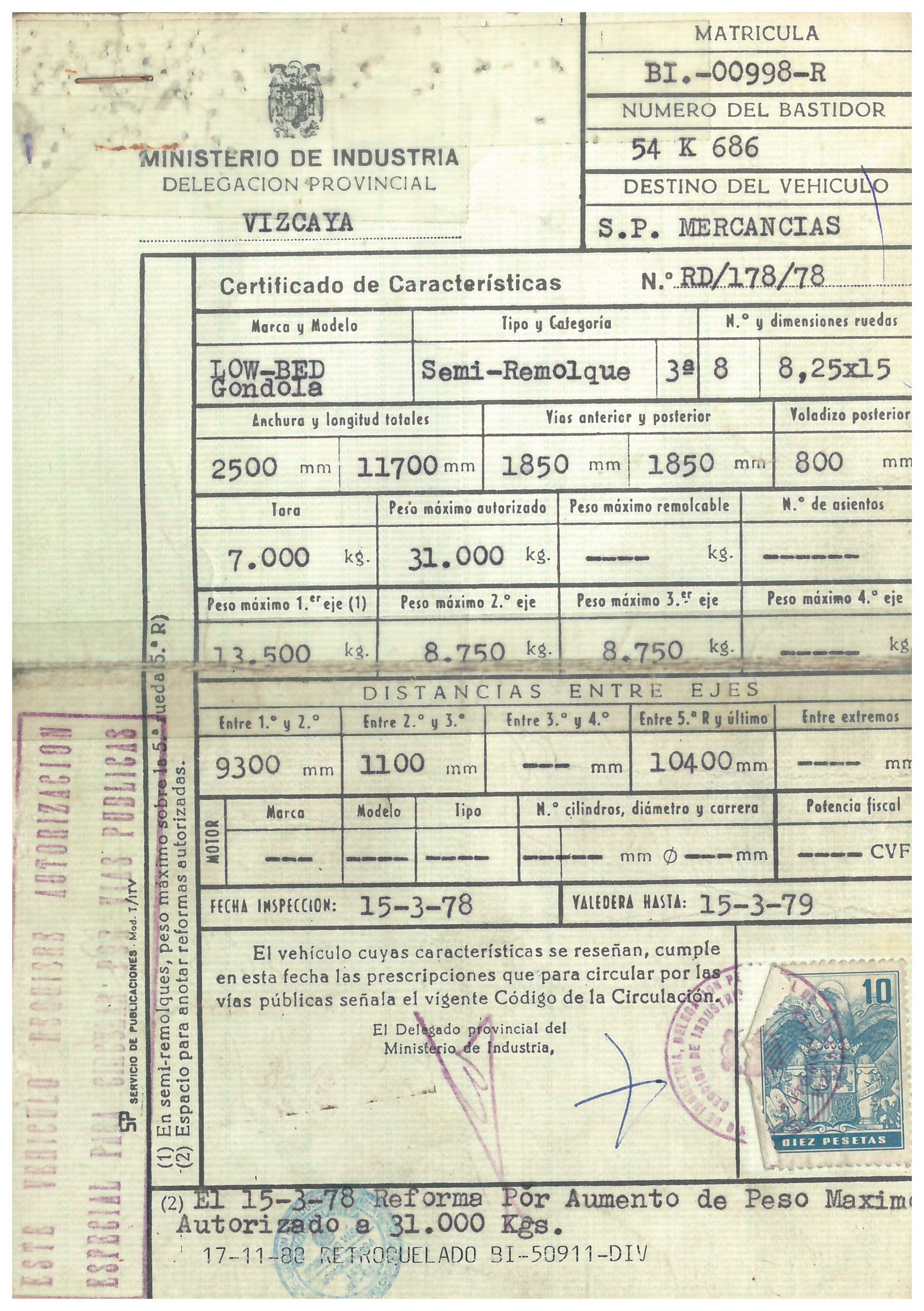 - Fecha de primera matriculación: 22/10/1976