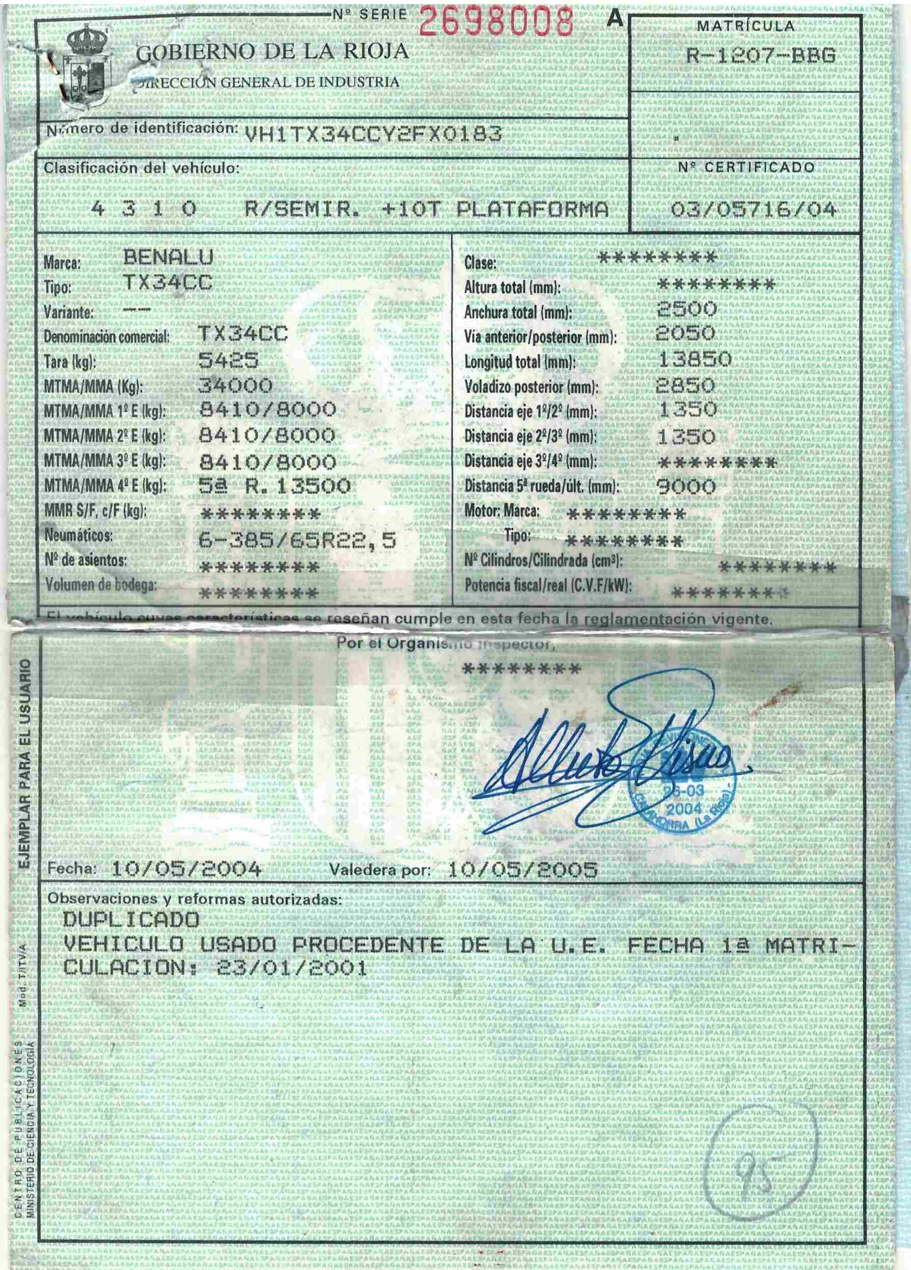 Se ofrece en venta plataforma maderera Benalu TX34CC, una opción robusta y fiable especialmente diseñada para el transporte de madera o cargas voluminosas. Matriculada en enero de 2001, esta plataforma cuenta con tres ejes montados sobre suspensión neumática, lo que garantiza una mayor estabilidad y confort en la conducción, incluso en trayectos largos y con carga pesada.