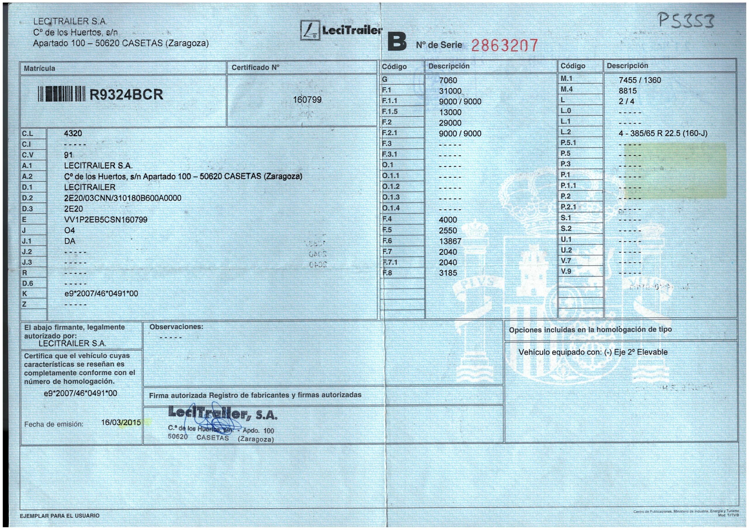 - Fecha de primera matriculación: 23/03/2015