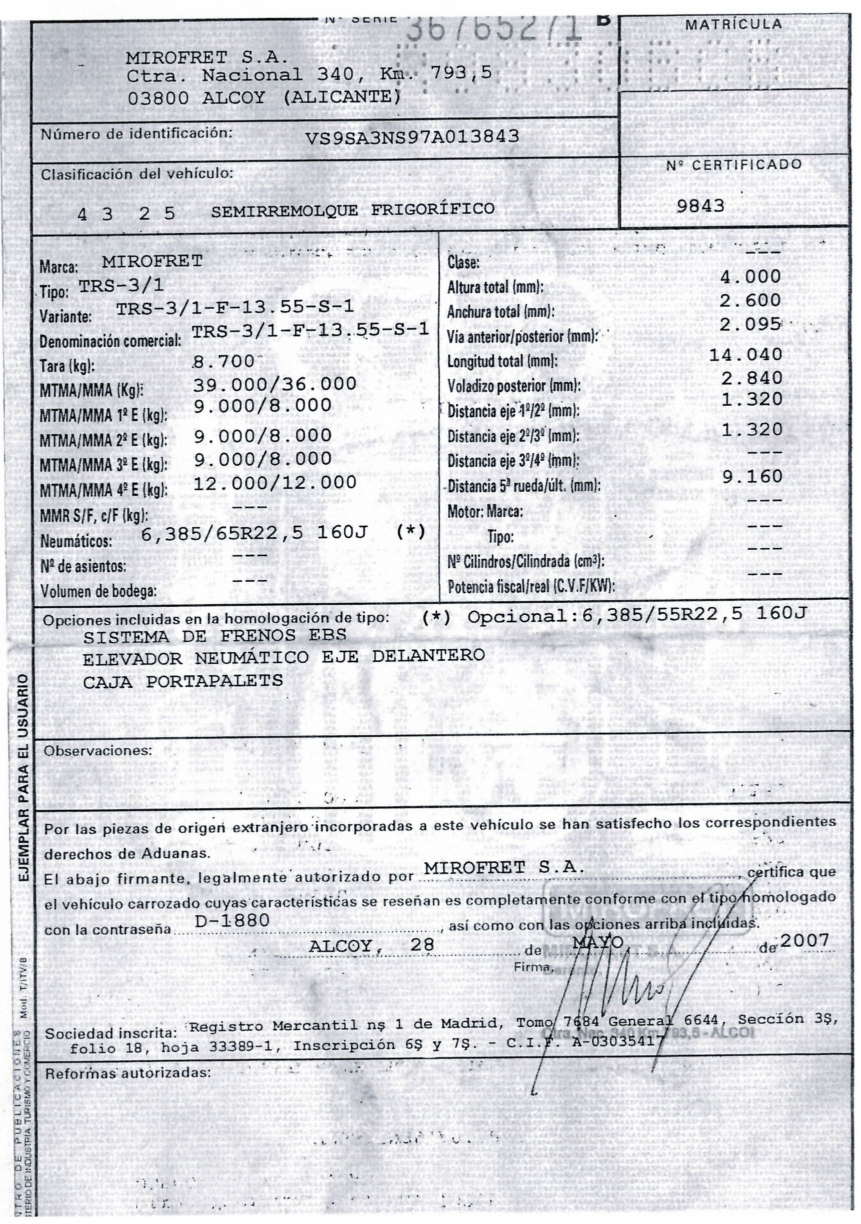- Fecha de primera matriculación: 31/05/2007