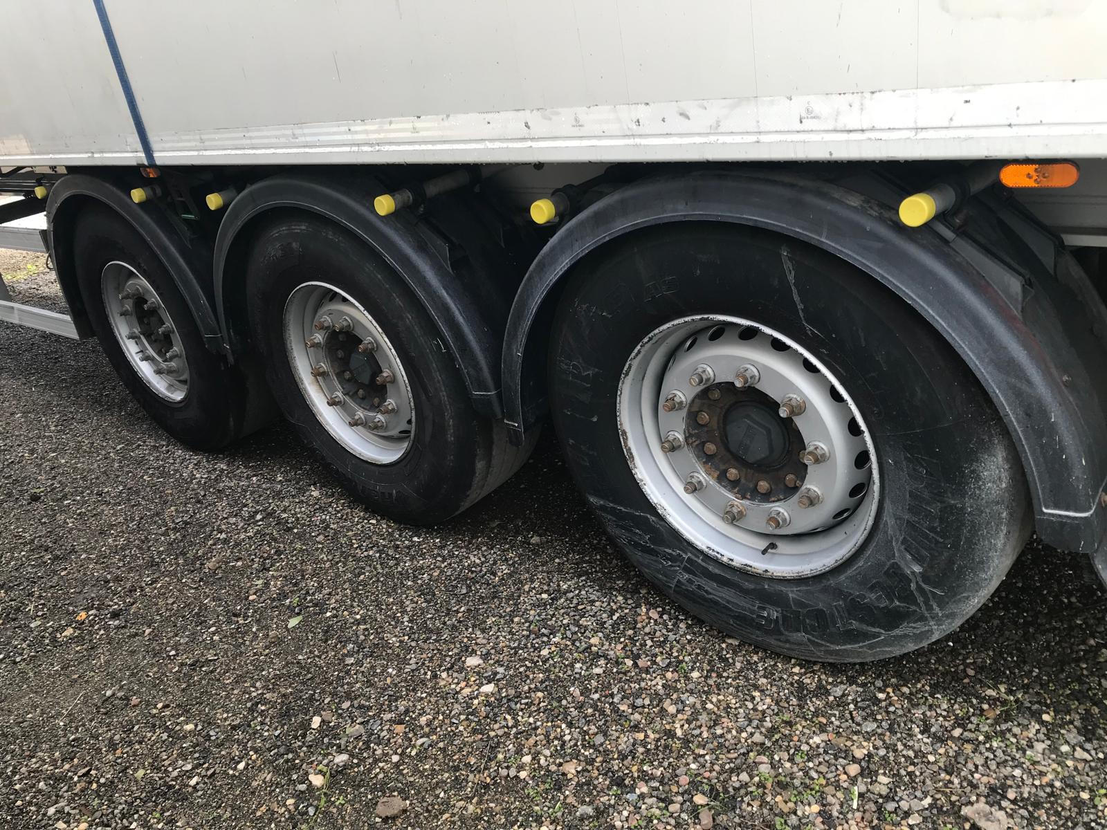 - Elevador neumático en primer eje gobernado por EBS con instalación eléctrica en punta de chasis para ayuda a la tracción u descanso forzado de todos los ejes