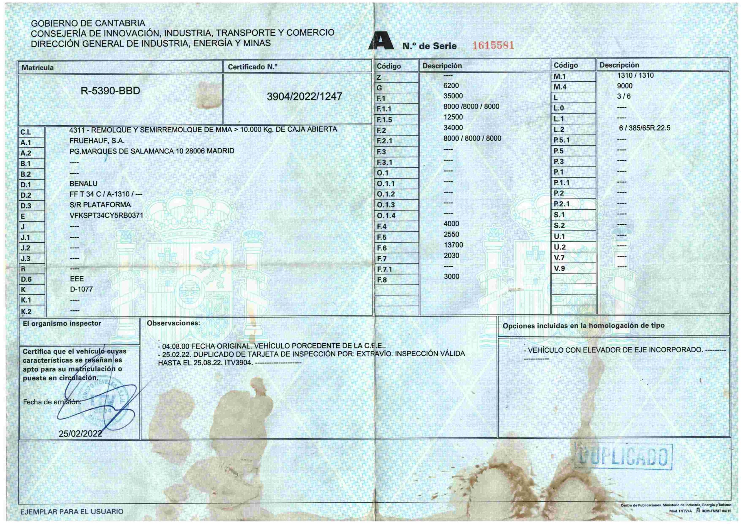 Semirremolque plataforma Benalu FF T 34 C – Año 2000