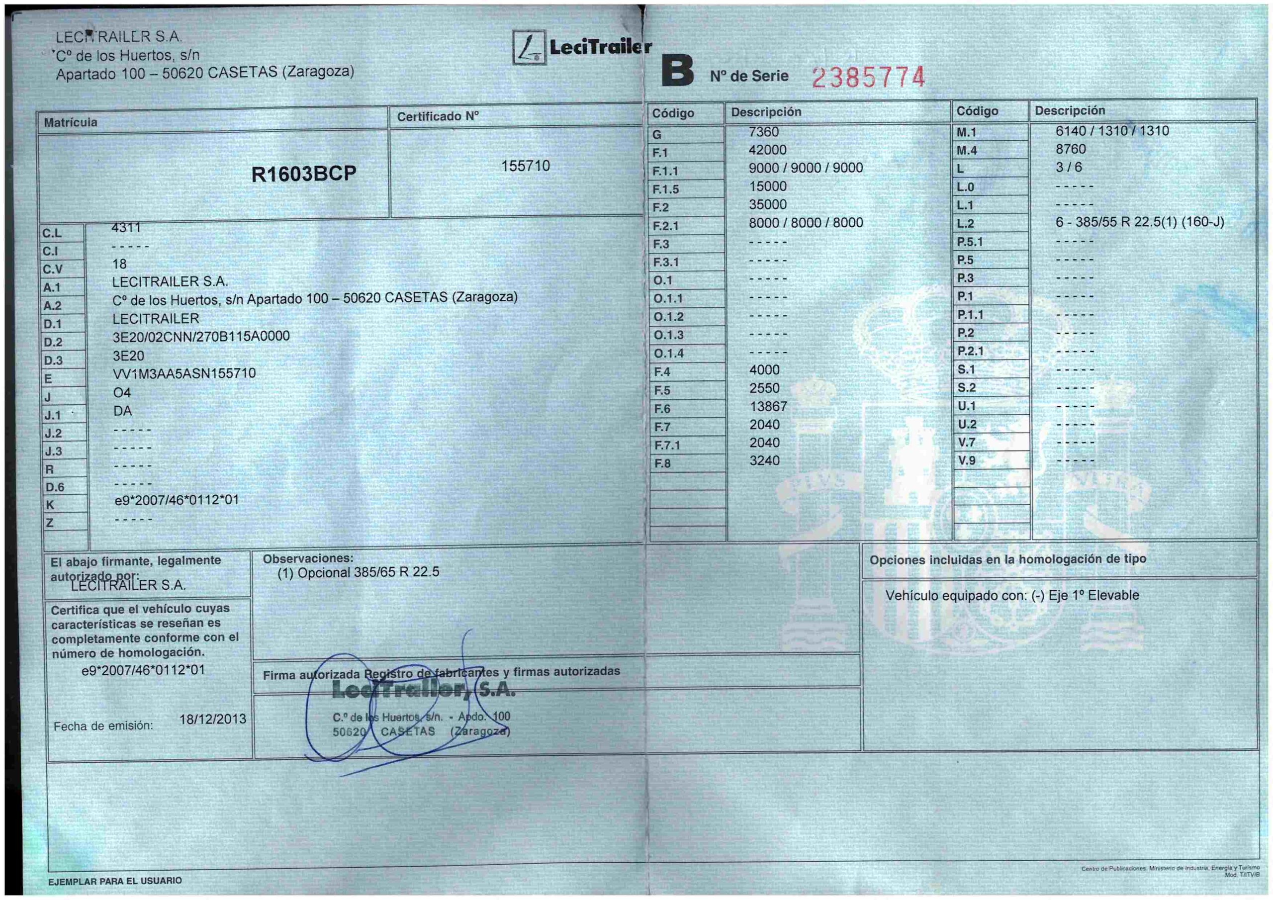 - Fecha de primera matriculación: 22/01/2014