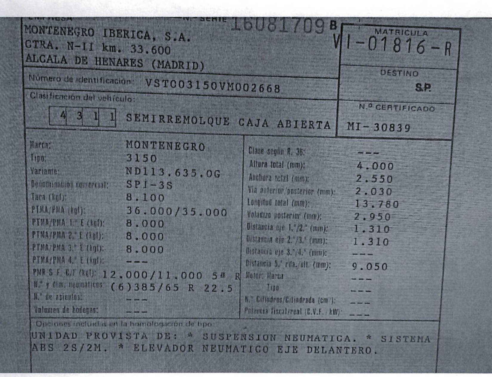 • Matrícula VI-01816-R