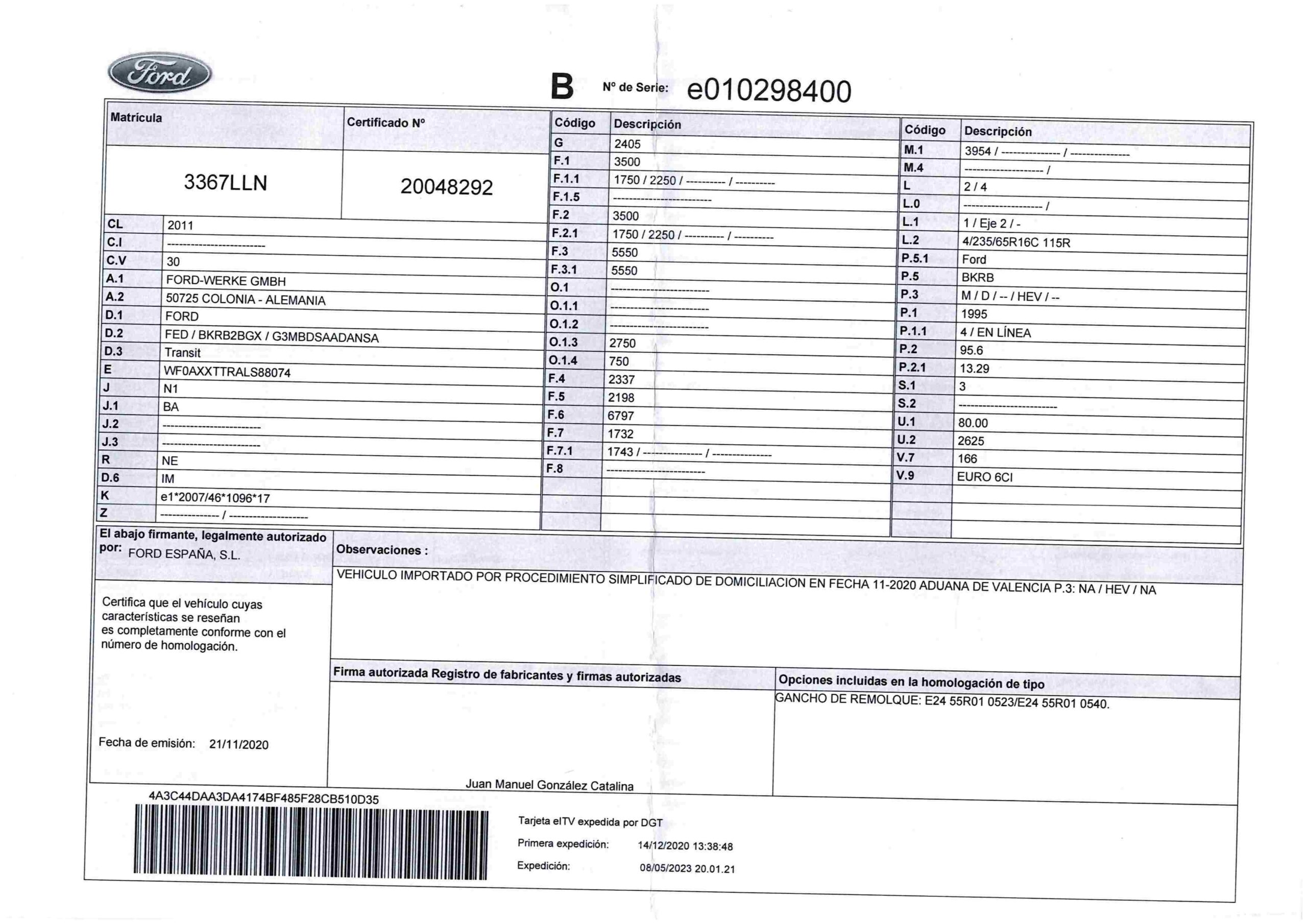 - Fecha de primera matriculación: 11/12/2020