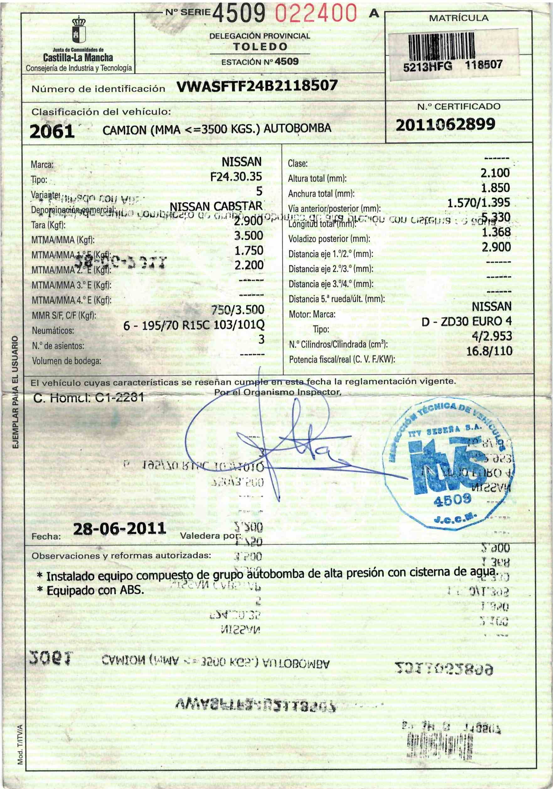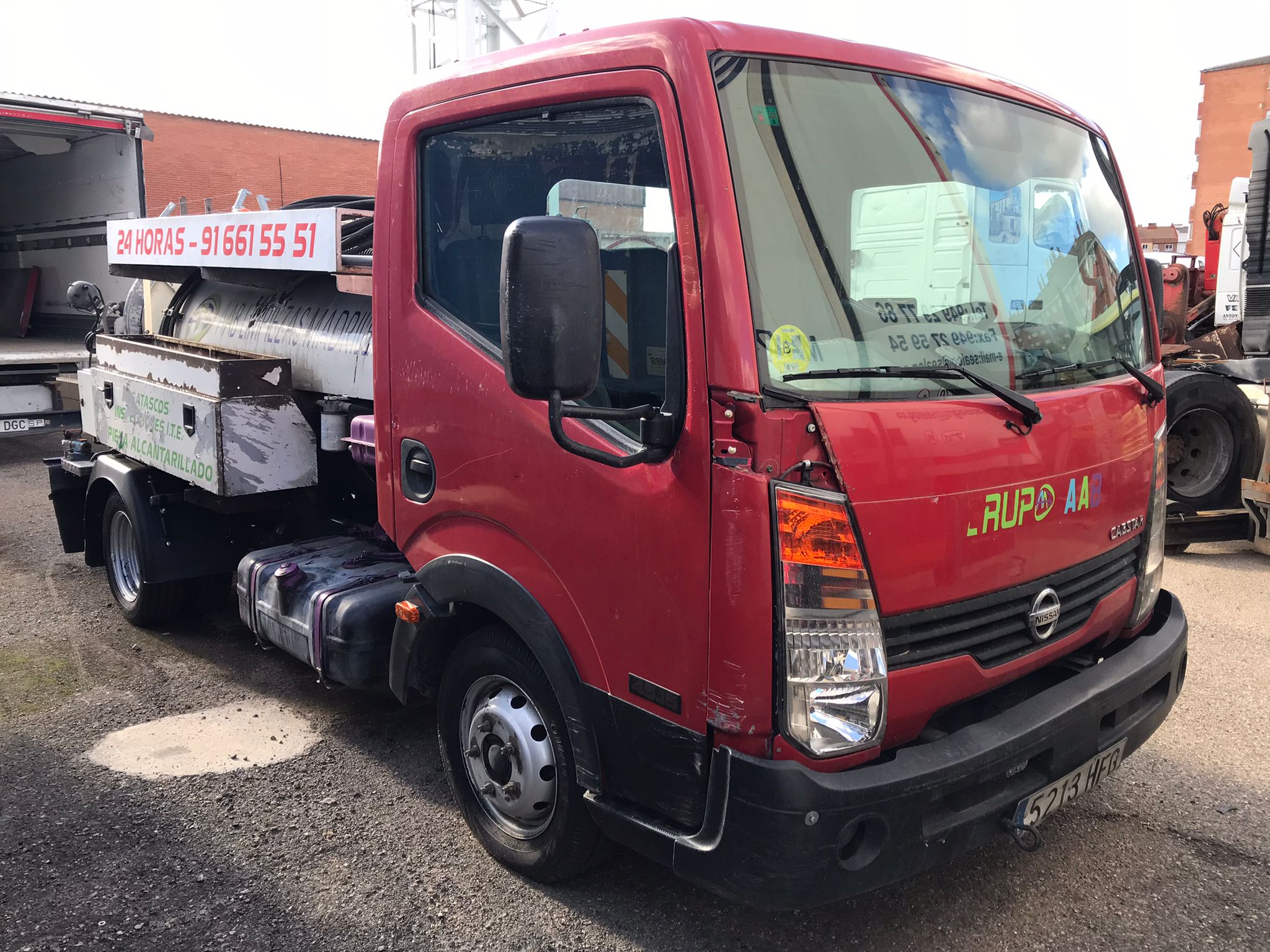 Vehículo ligero Nissan Cabstar con cisterna de agua y autobomba de alta presión, cambio manual de 5 velocidades.