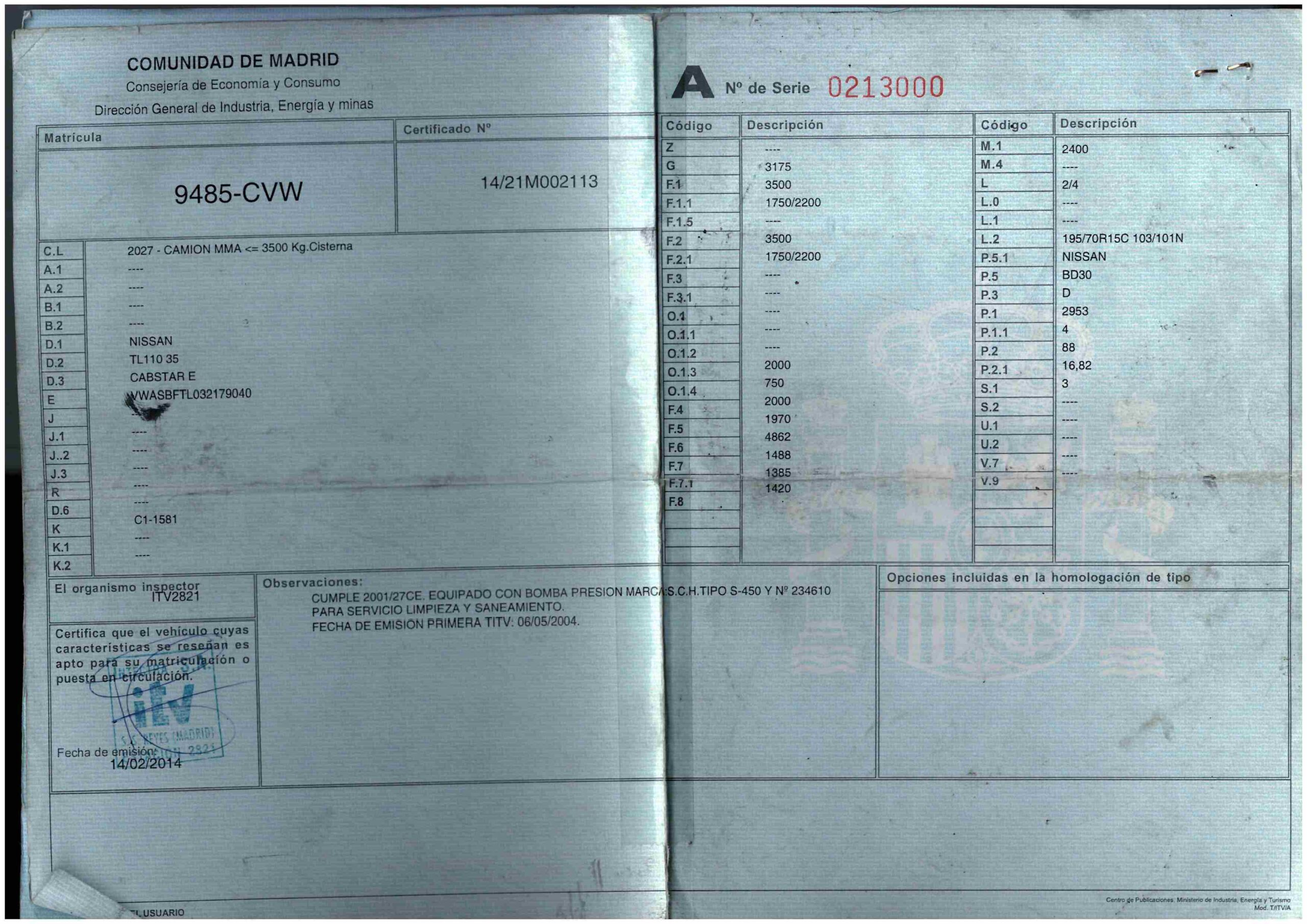 - Fecha de primera matriculación: 10/05/2004