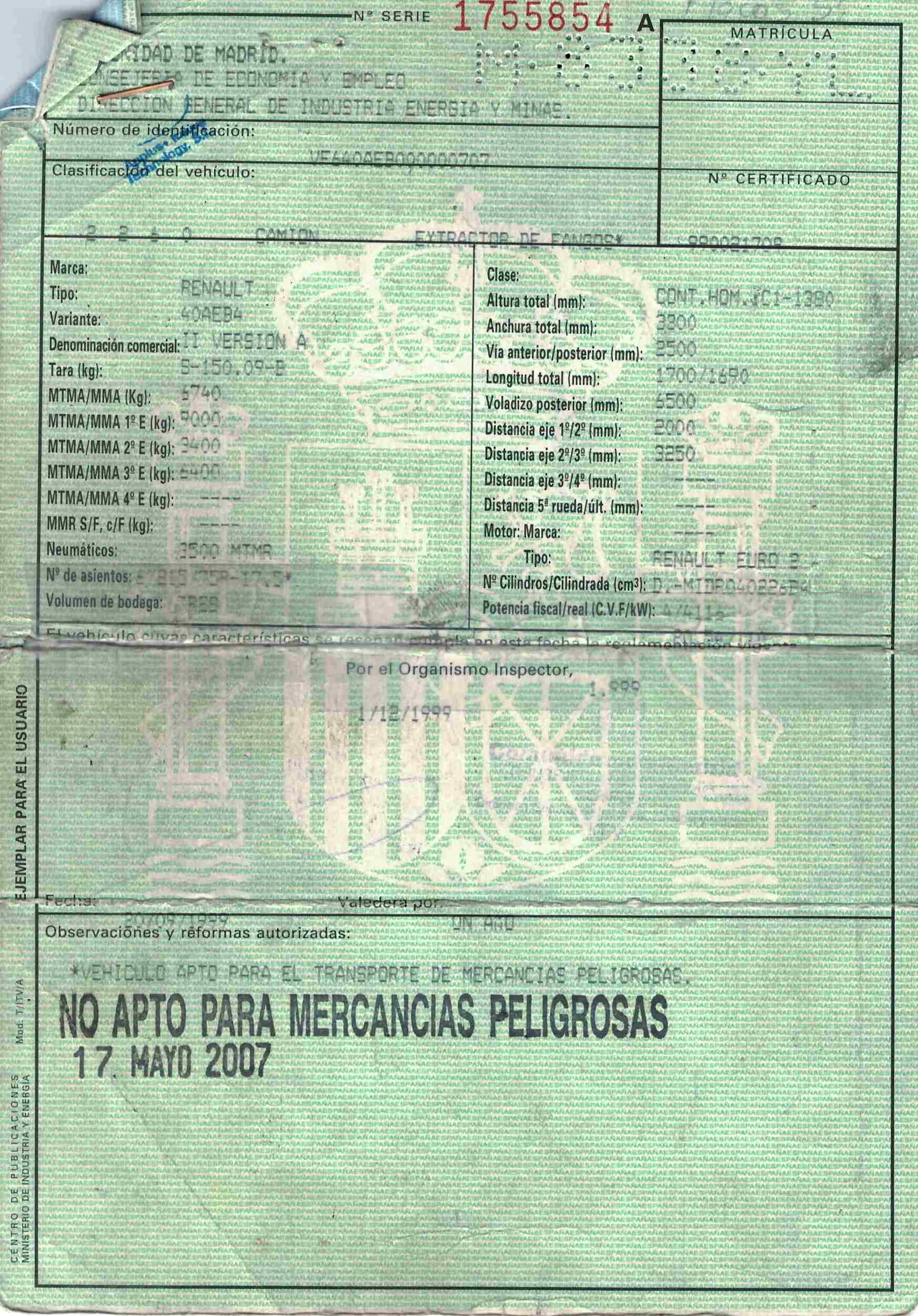 - Fecha de primera matriculación: 15/09/1999
